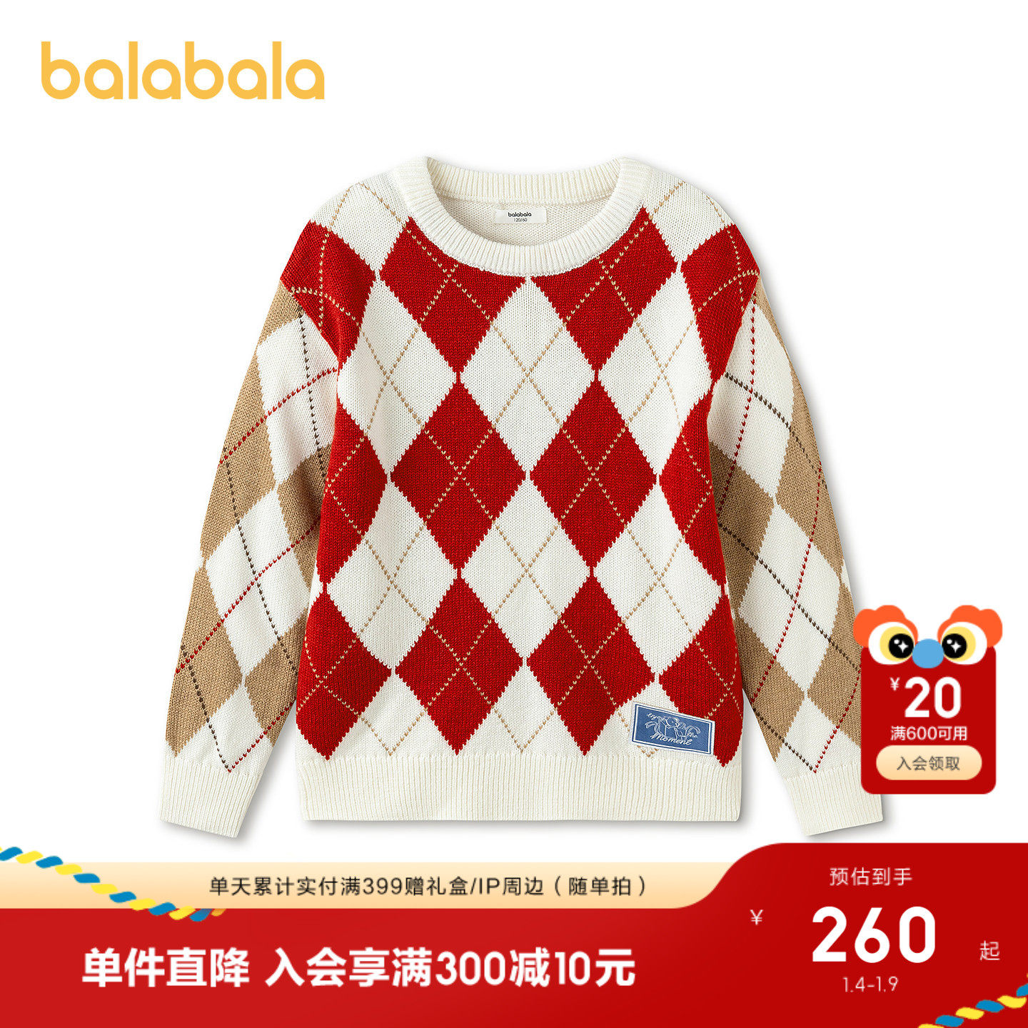 【商场同款】巴拉巴拉童装儿童毛衣男童2026新款春装红红色拜年服
