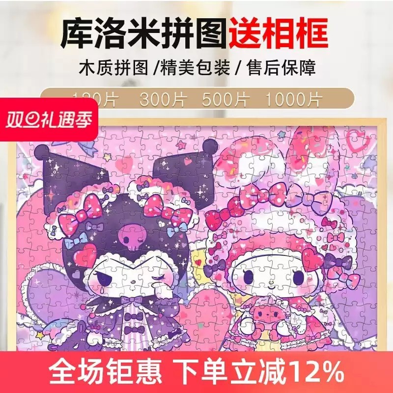 库洛米拼图木质300/500片美乐蒂儿童益智6岁以上女孩8-10岁动漫