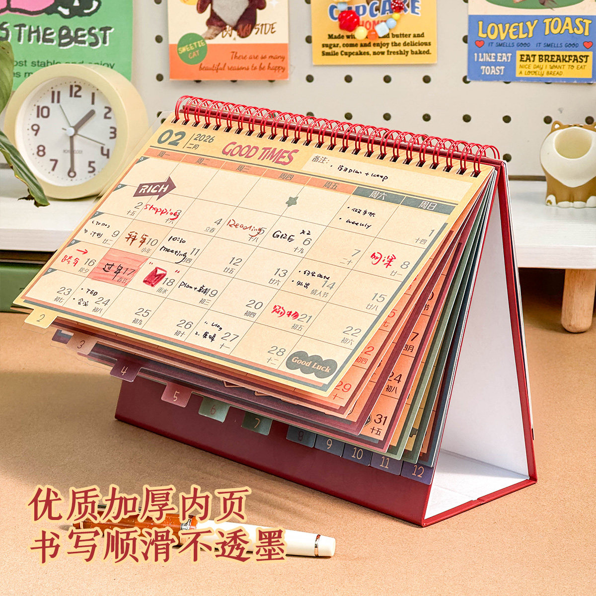 三年二班 2026港真的台历定制复古日历2025年新款打卡台历桌面摆件办公室好物神器台历创意倒计时记事本月历K