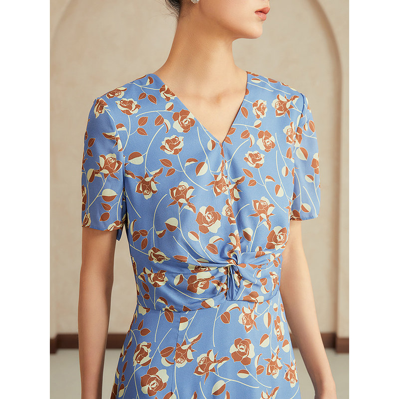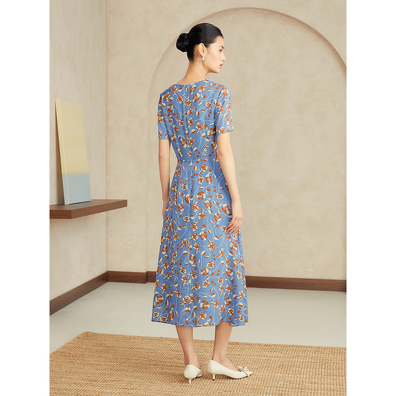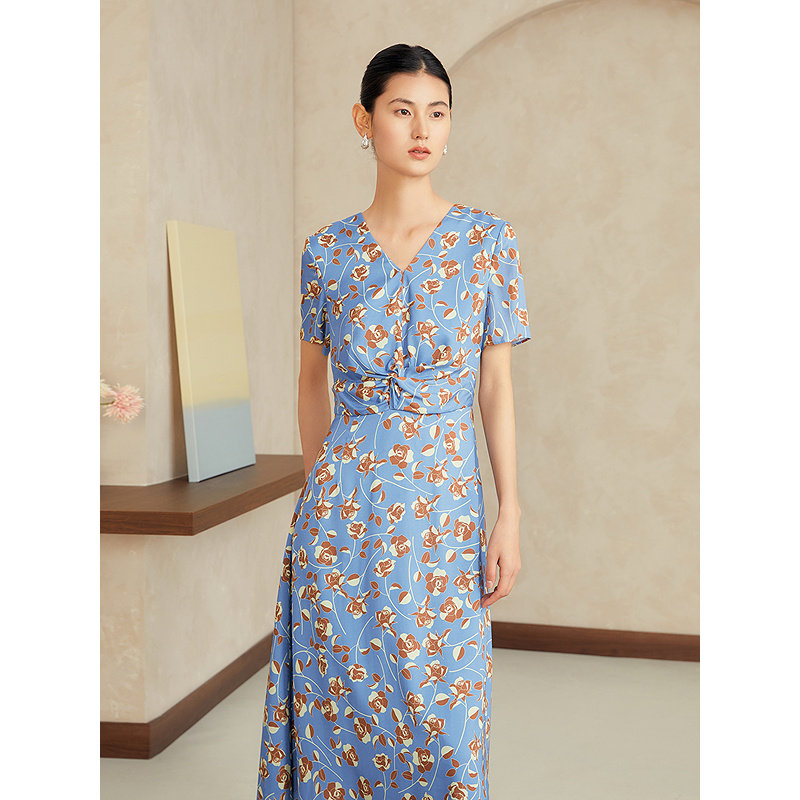 【真丝系列】YINER音儿专选2025夏季新款弹力桑蚕丝印花V领连衣裙