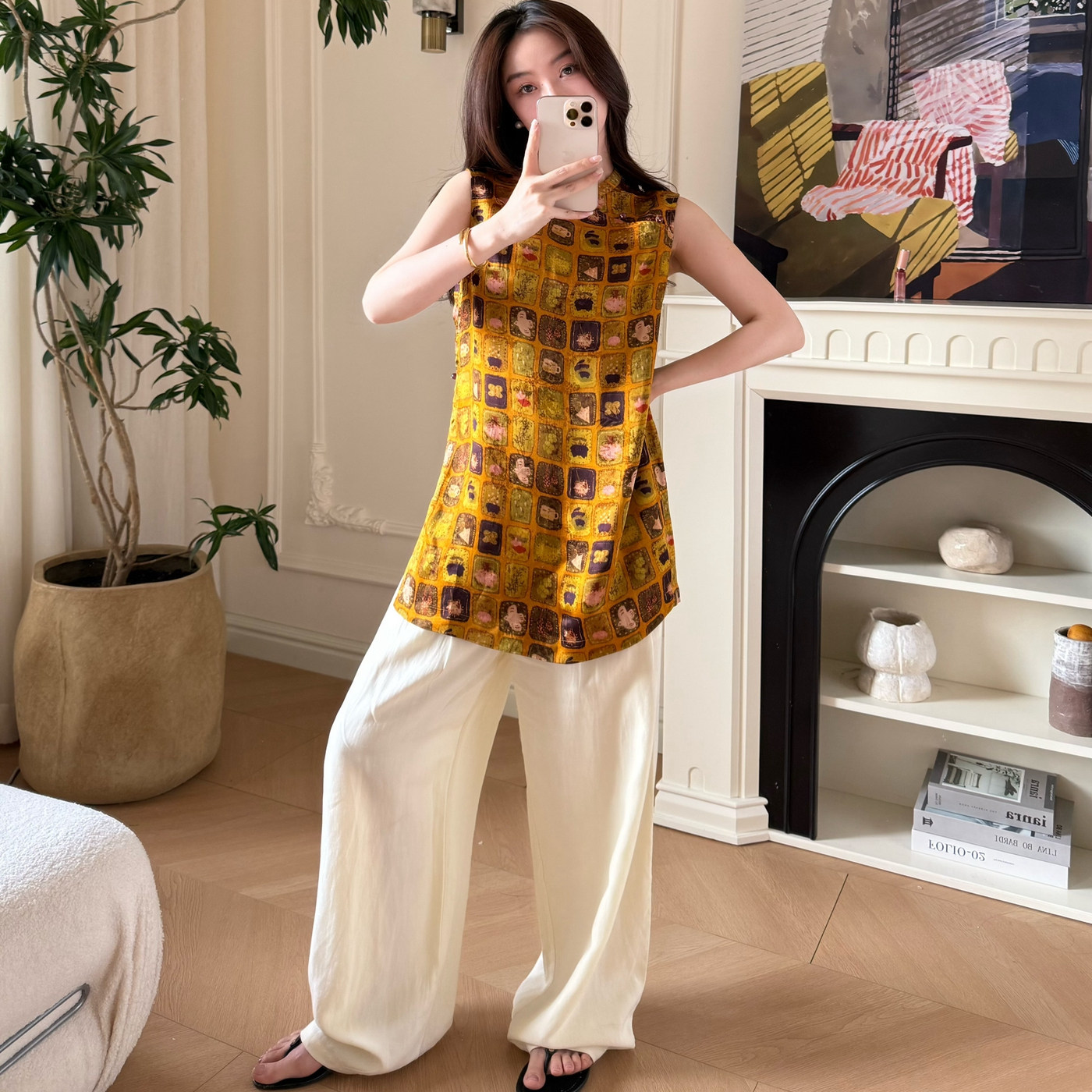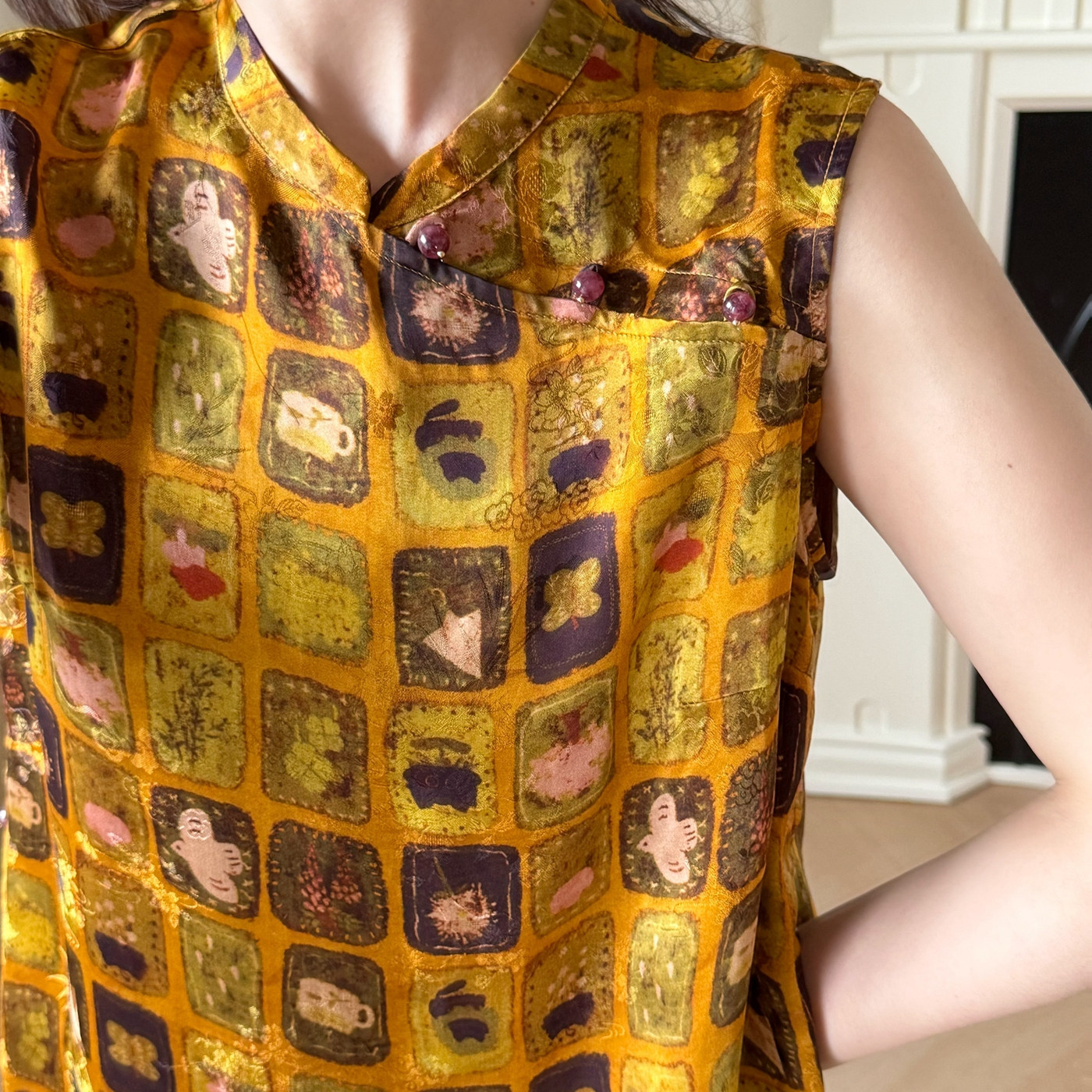 曹大曼 重磅真丝旗袍马甲新中式国风复古气质洋气改良短旗袍女
