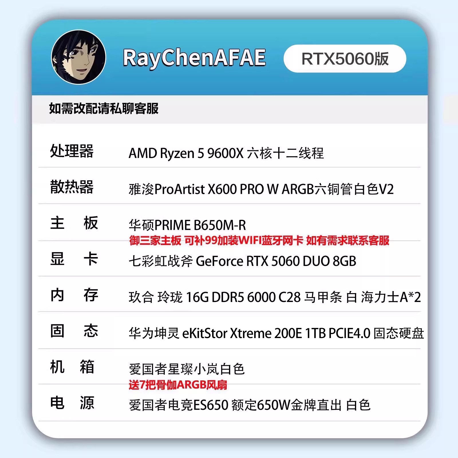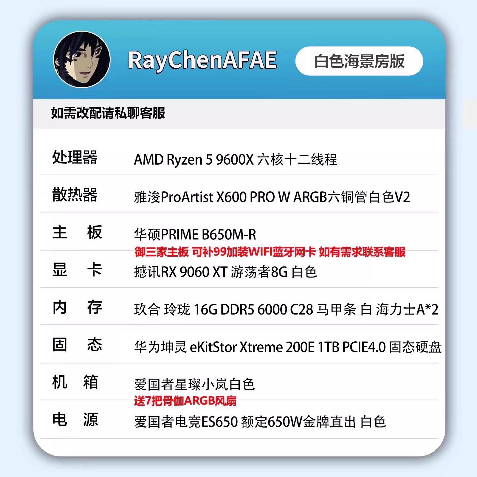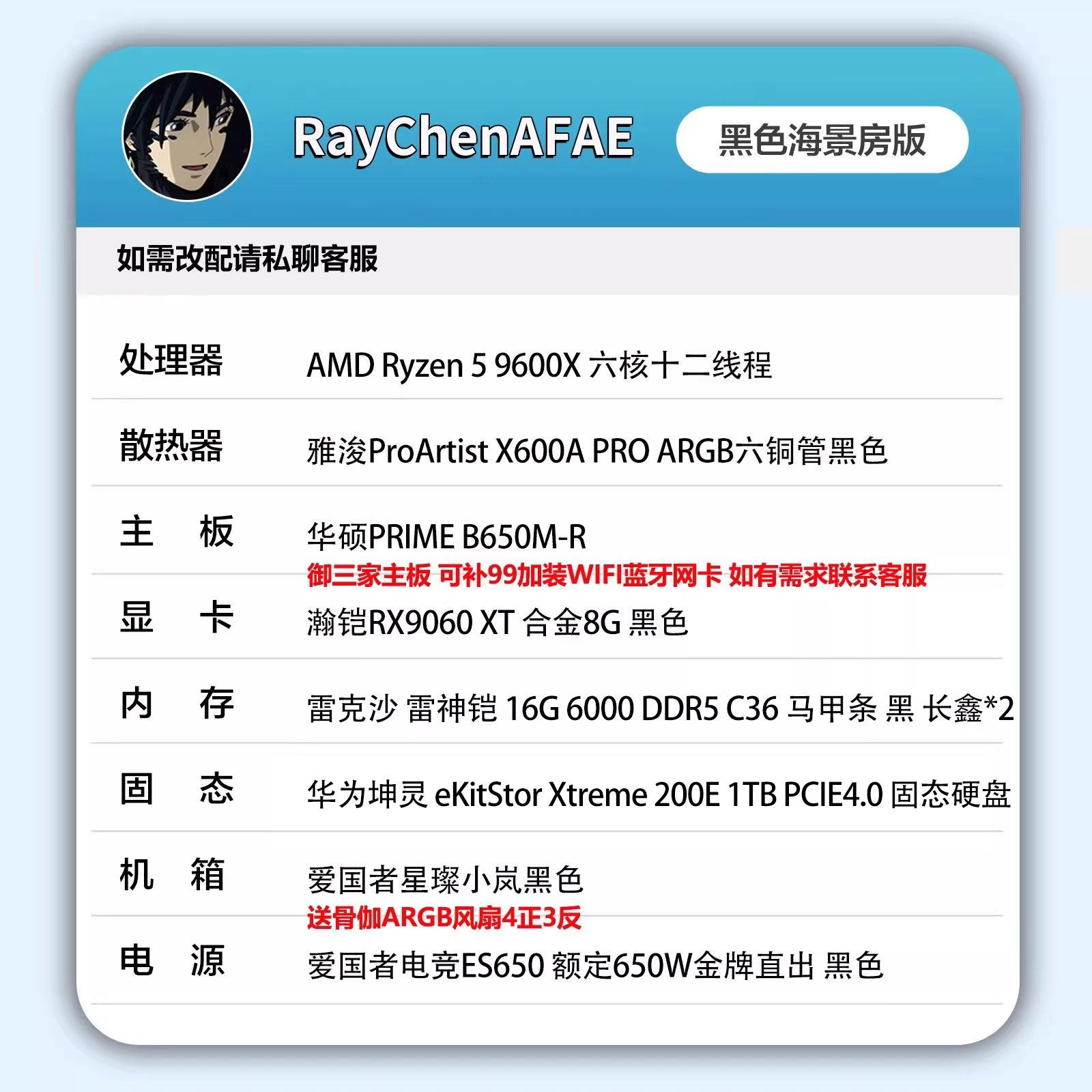 R5 9600X+9060XT8G网游利器高颜值海景房高性能DIY游戏生产力主机