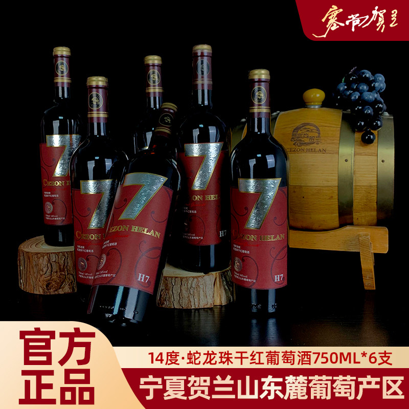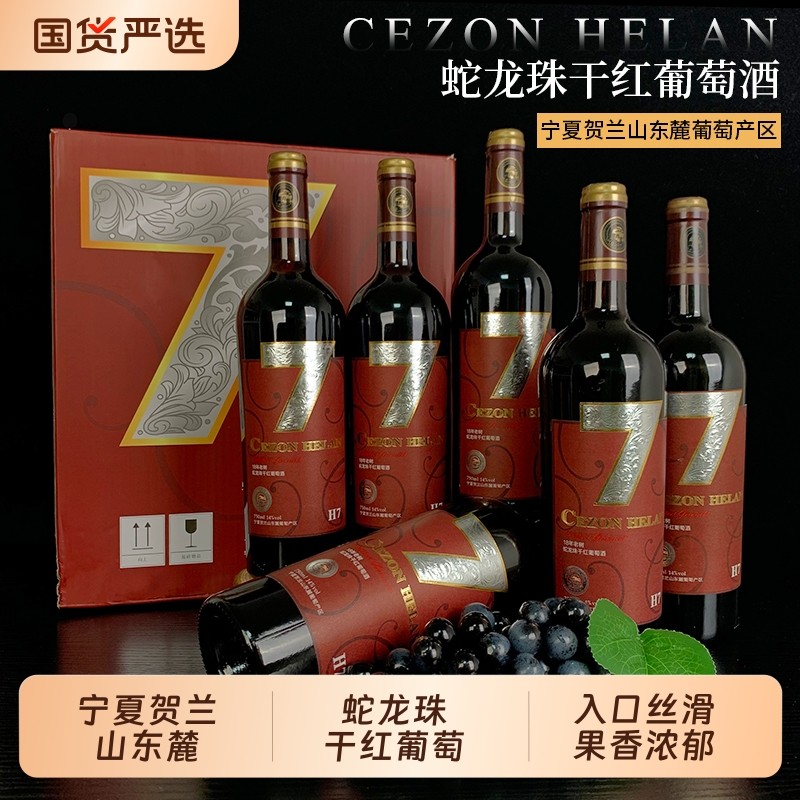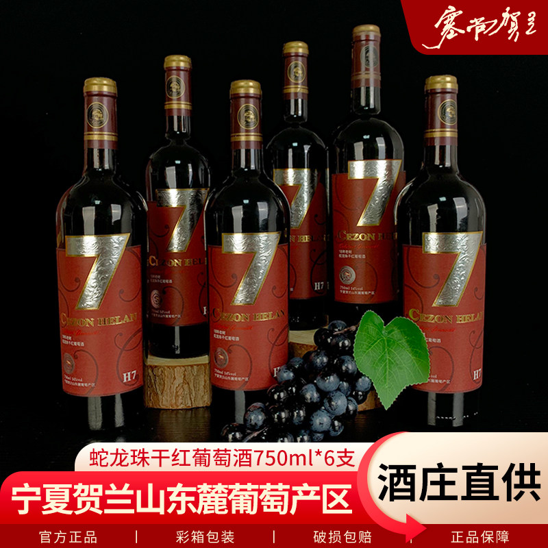 【宁夏红酒】蛇龙珠干红葡萄酒750mlx6瓶宁夏贺兰山东麓国产红酒