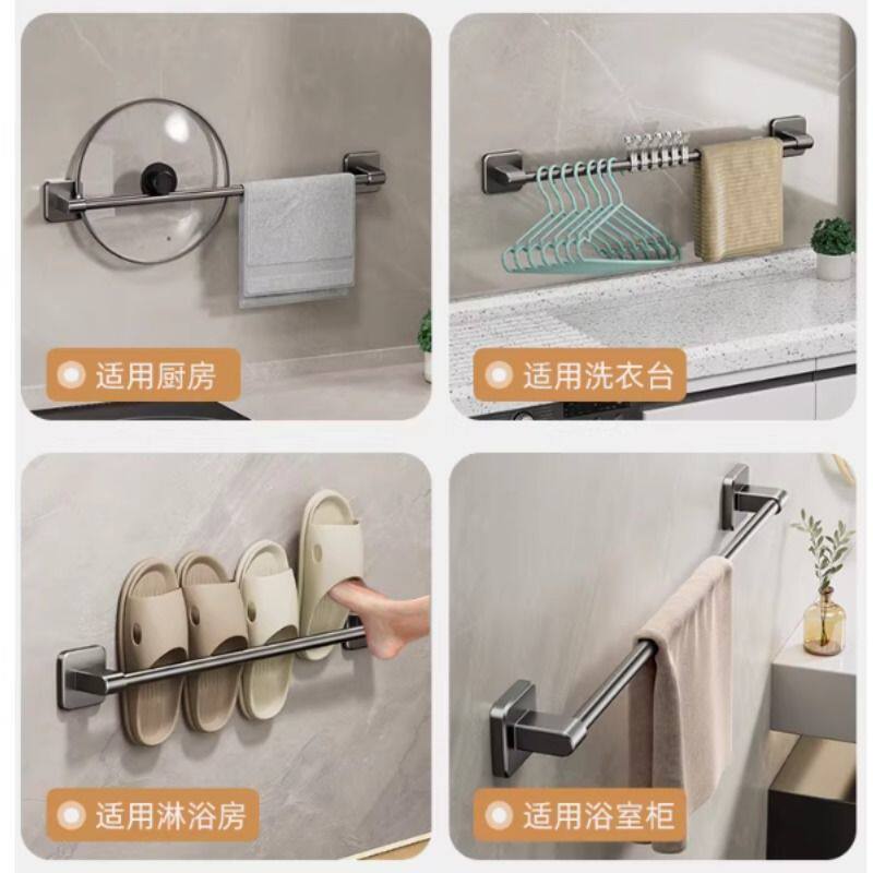 吸盘毛巾架卫生间免打孔浴巾置物架子一体浴室厕所挂杆太空铝套件