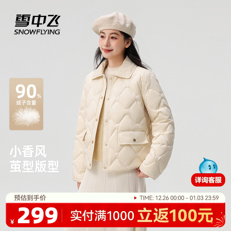 雪中飞2025冬新款羽绒服女冬小个子短通勤学院风外套中式小香风