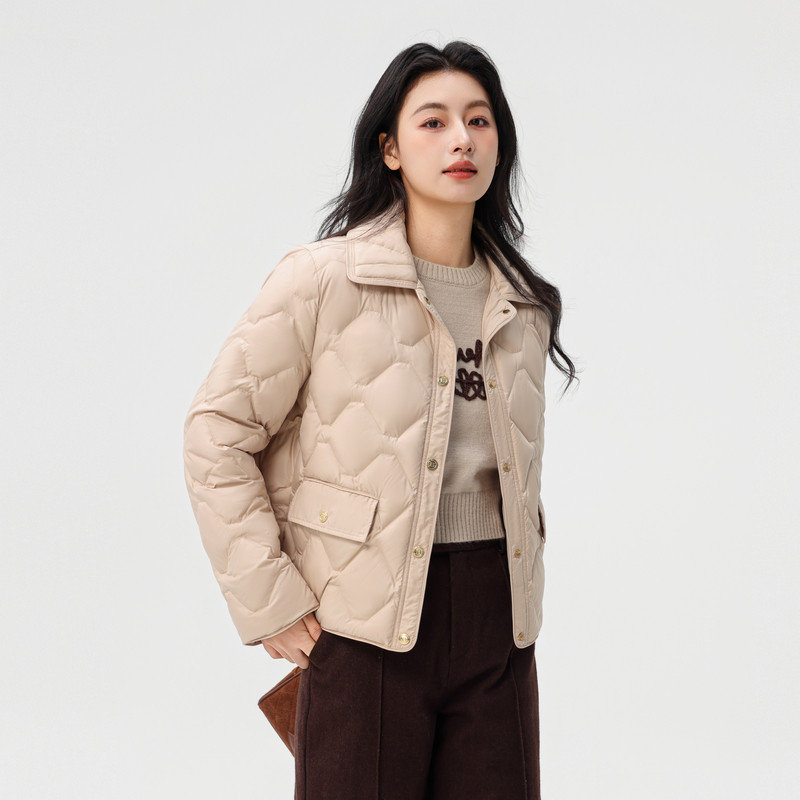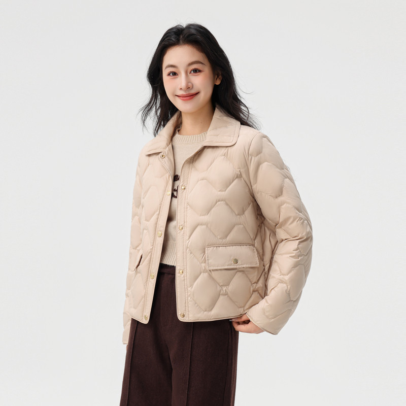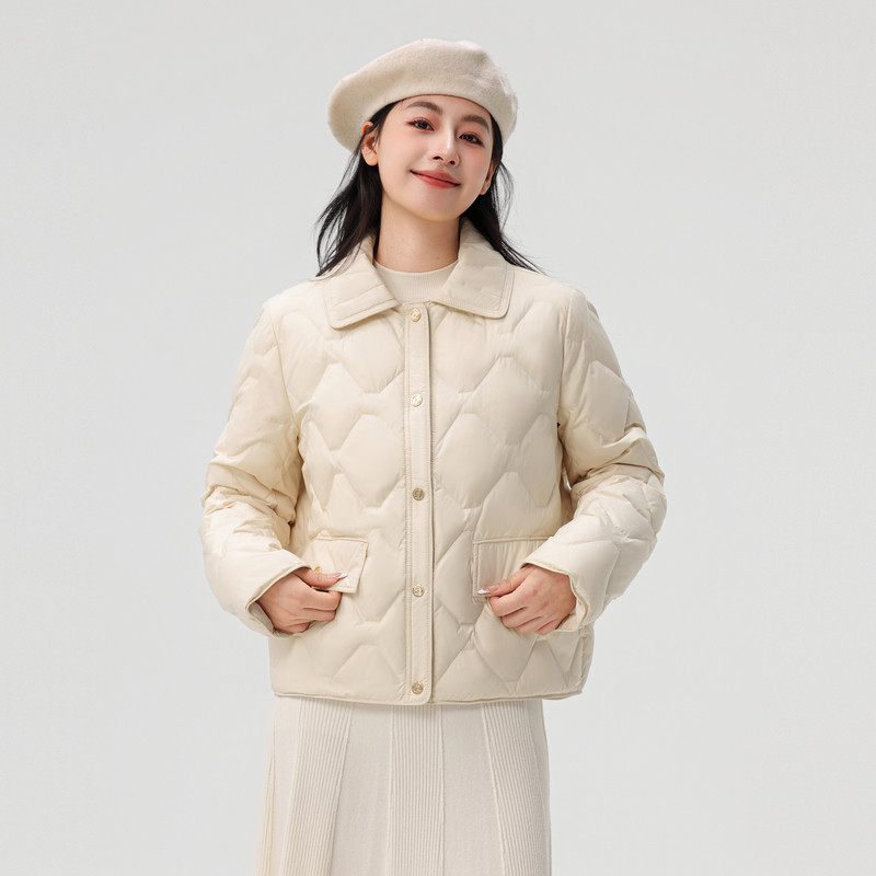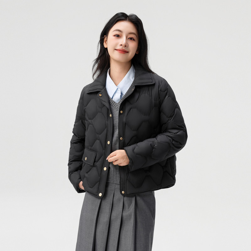 鸭鸭轻薄羽绒服女2025年秋冬反季短款立领修身舒适上衣内胆外套J