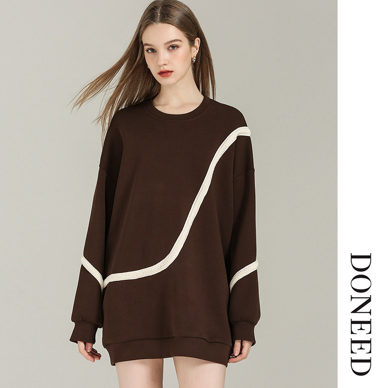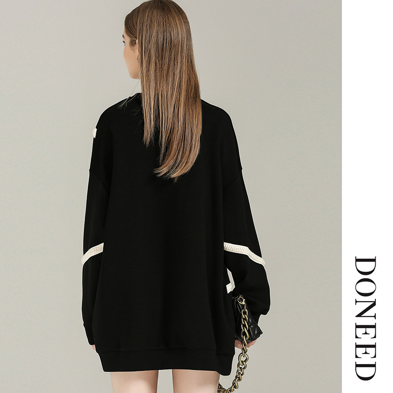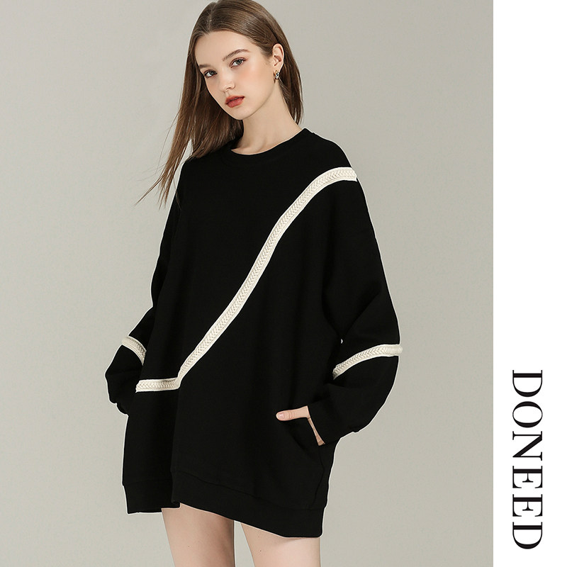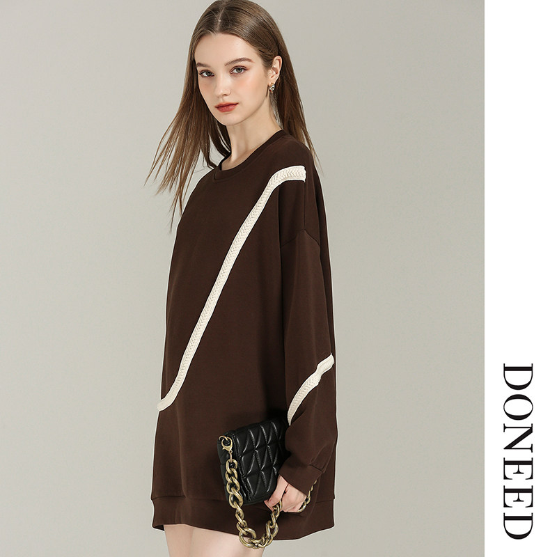 DONEED春款甜酷风个性撞色织带宽松舒适卫衣裙小个子连衣裙女