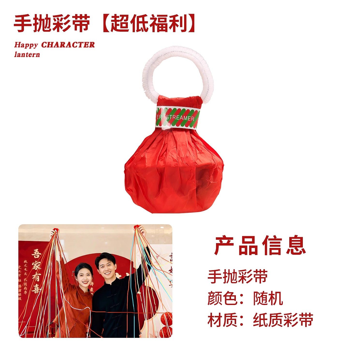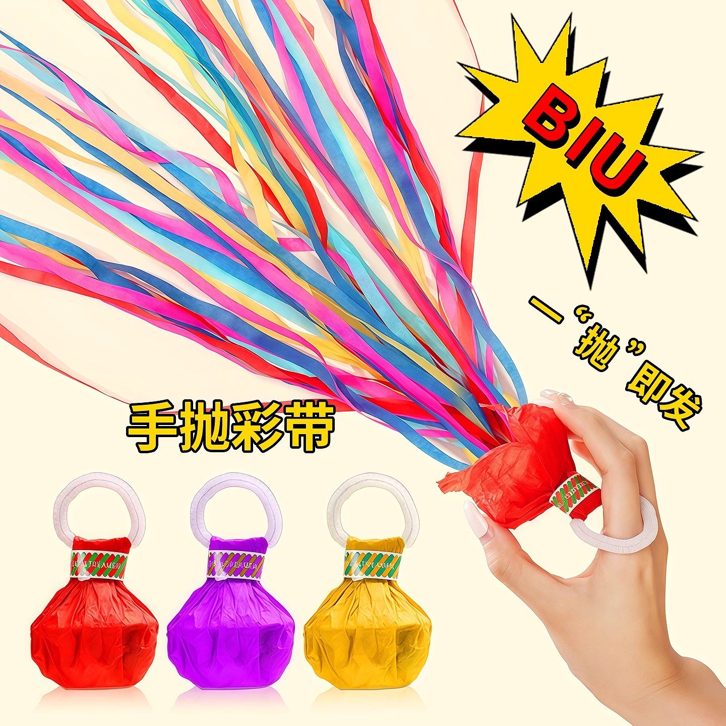 手抛彩带拉花彩条礼花枪订婚拍照结婚氛围道具蜘蛛丝手环婚礼手持