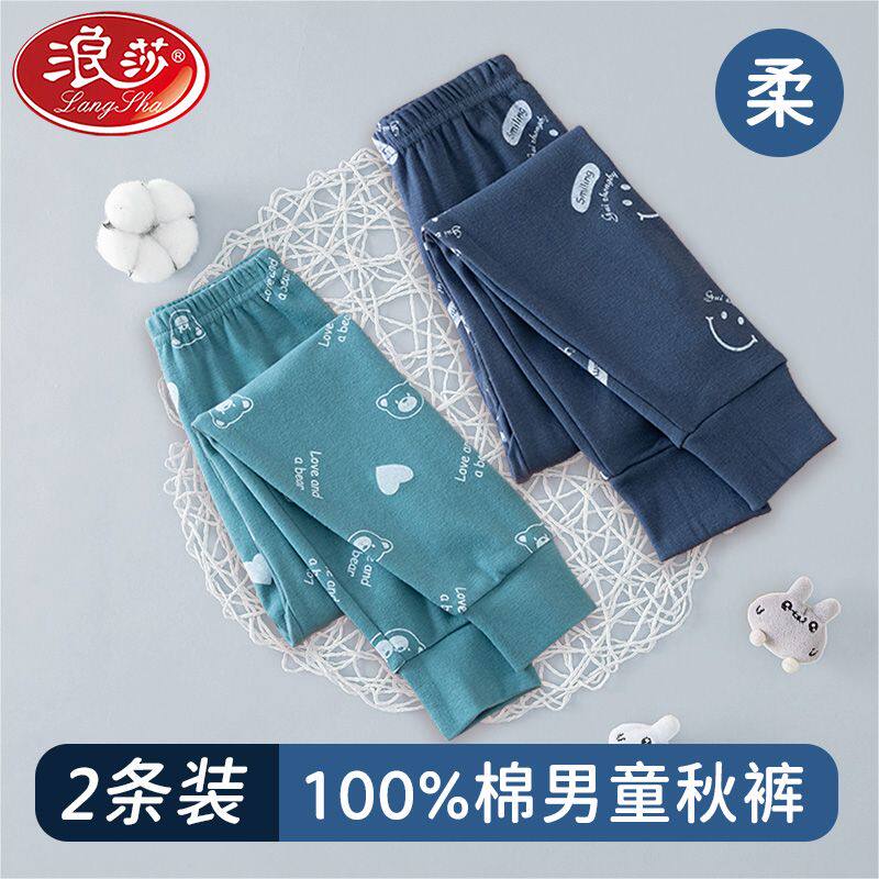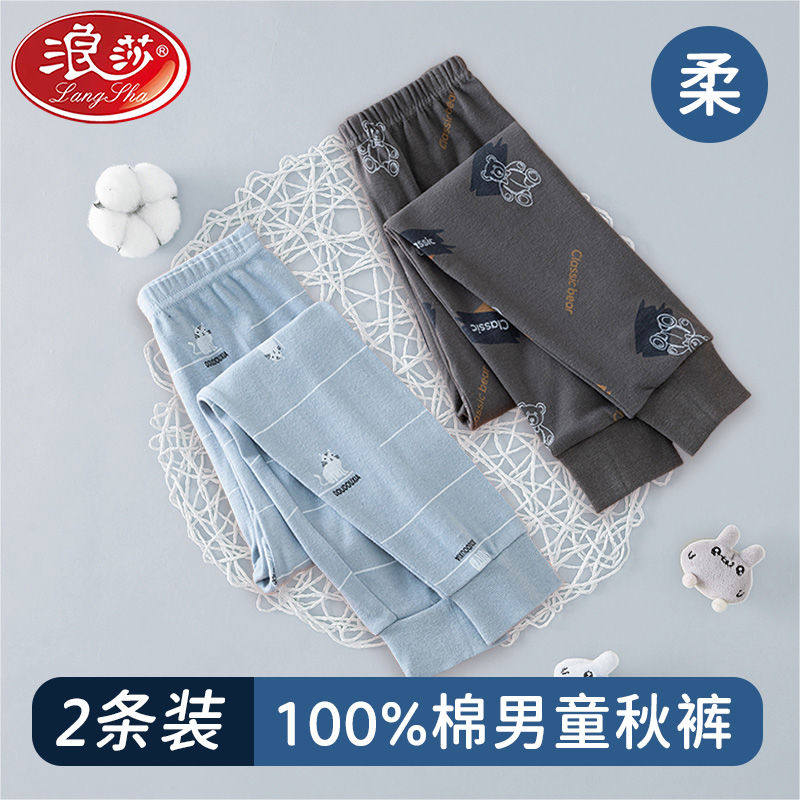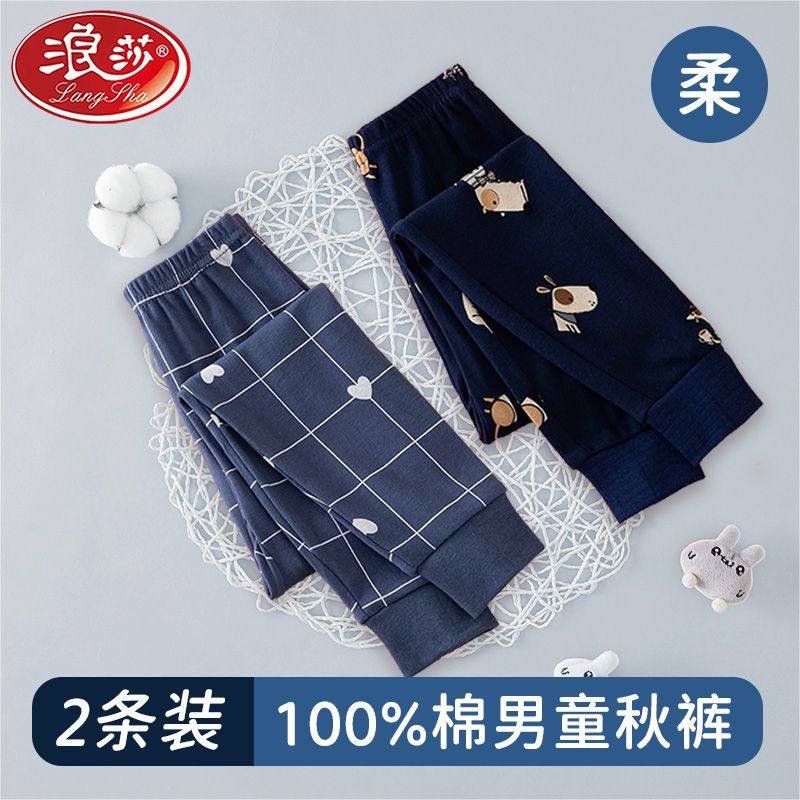 浪莎秋裤男童纯棉家居儿童保暖单裤子中大小童棉毛裤宝宝男孩睡裤