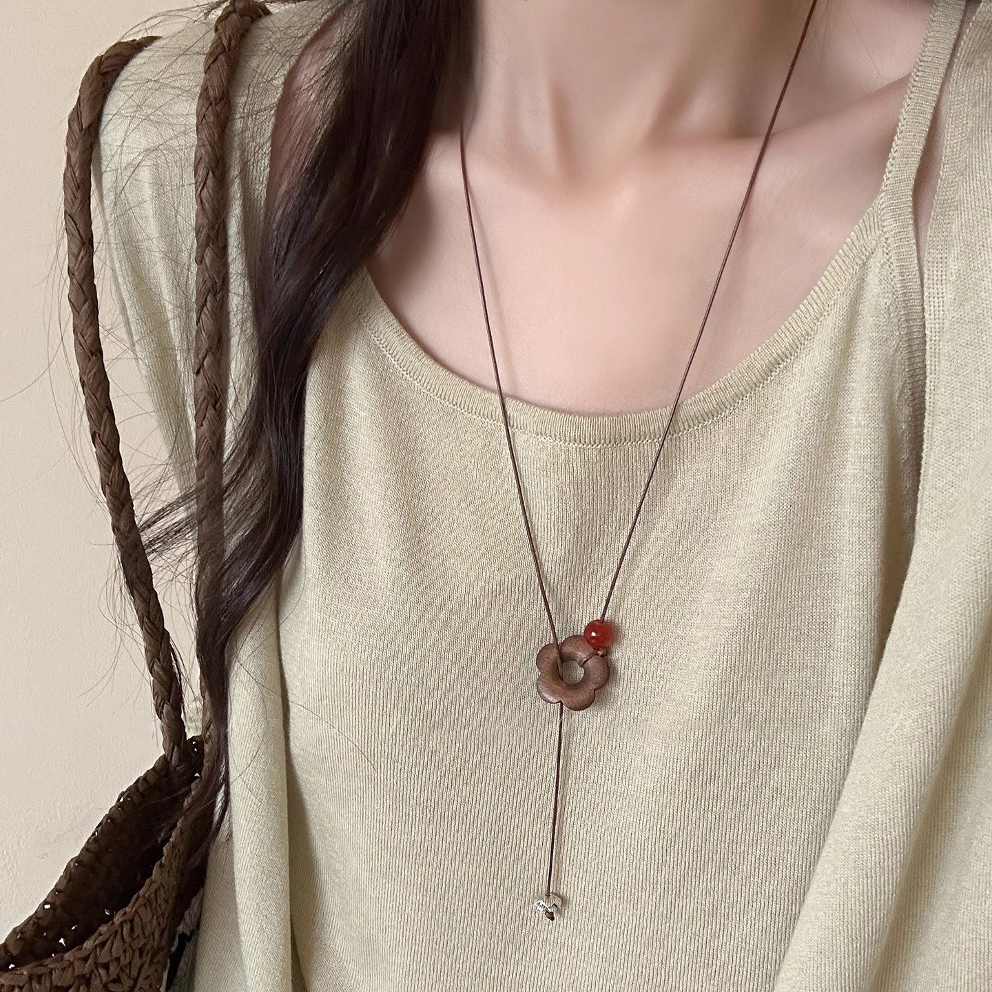 现货橡果森系植物干果毛衣链长款风配饰男女手工编织棉麻服饰项链