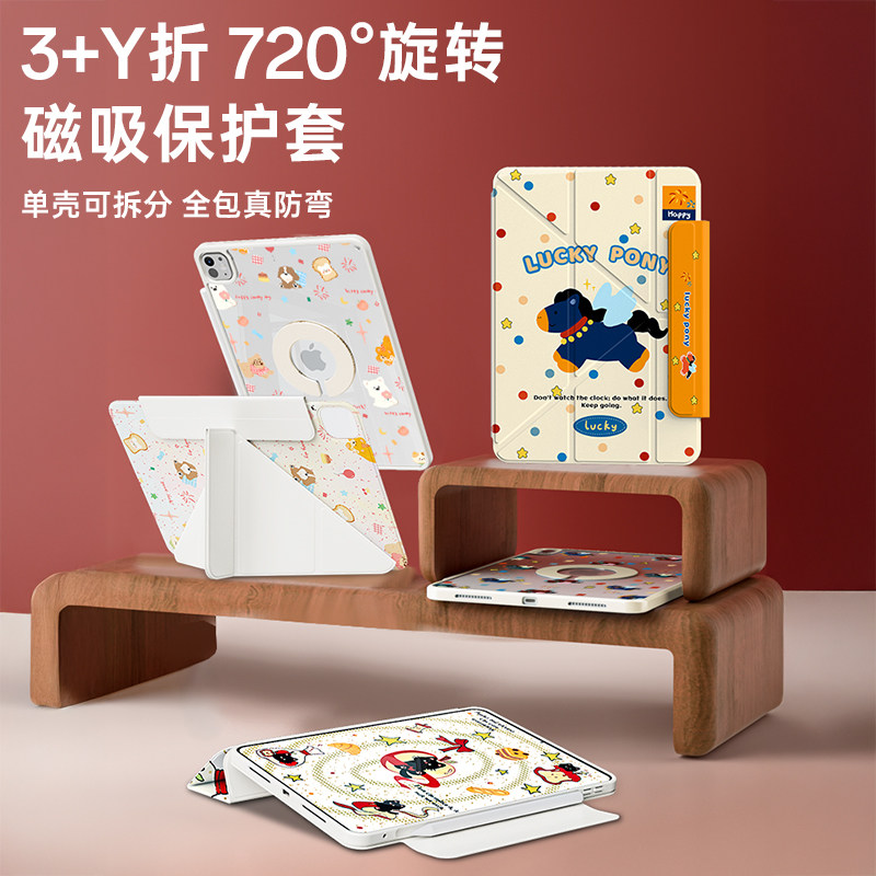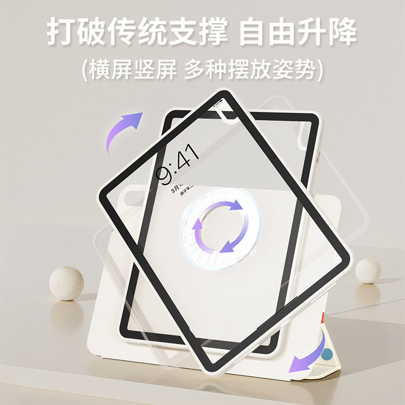 720°旋转iPadPro保护套air7磁吸拆分iPad11苹果平板mini7全包防弯摔10代搭扣笔槽air654横竖支架13寸透明129