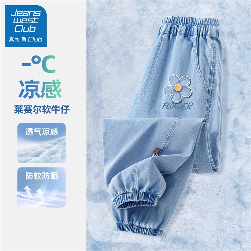 真维斯club童装女童夏季牛仔裤薄款2025新款儿童凉感防蚊裤子夏装
