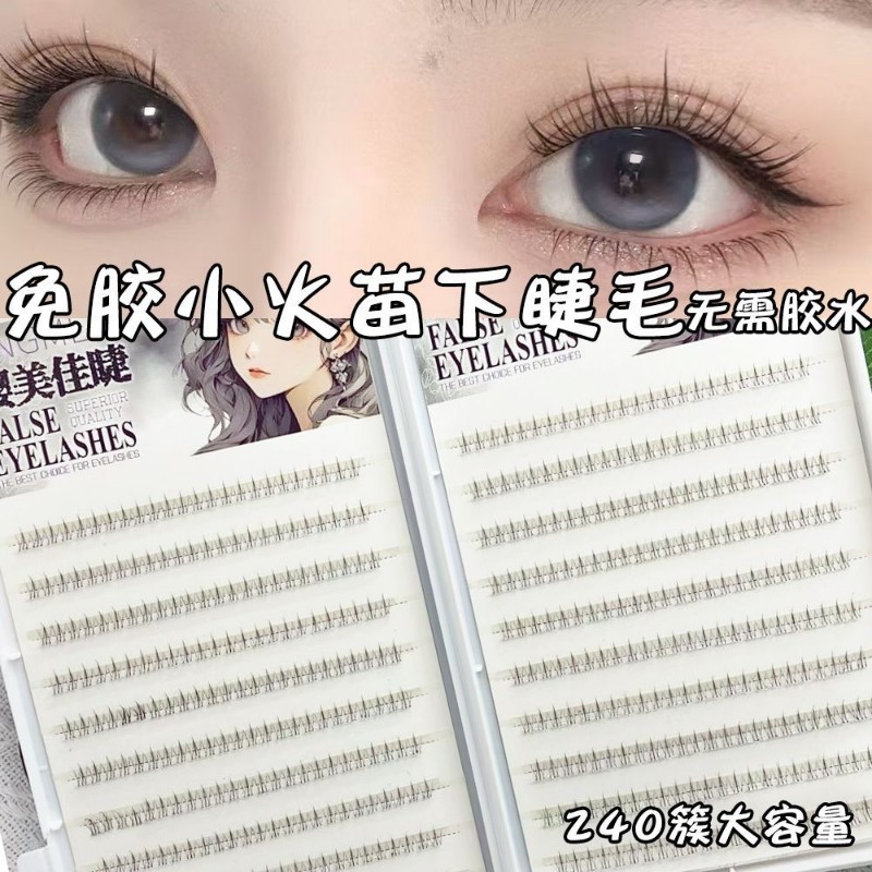 大容量免胶小火苗下睫毛睫毛书自然仿真透明梗懒人漫画款假睫毛