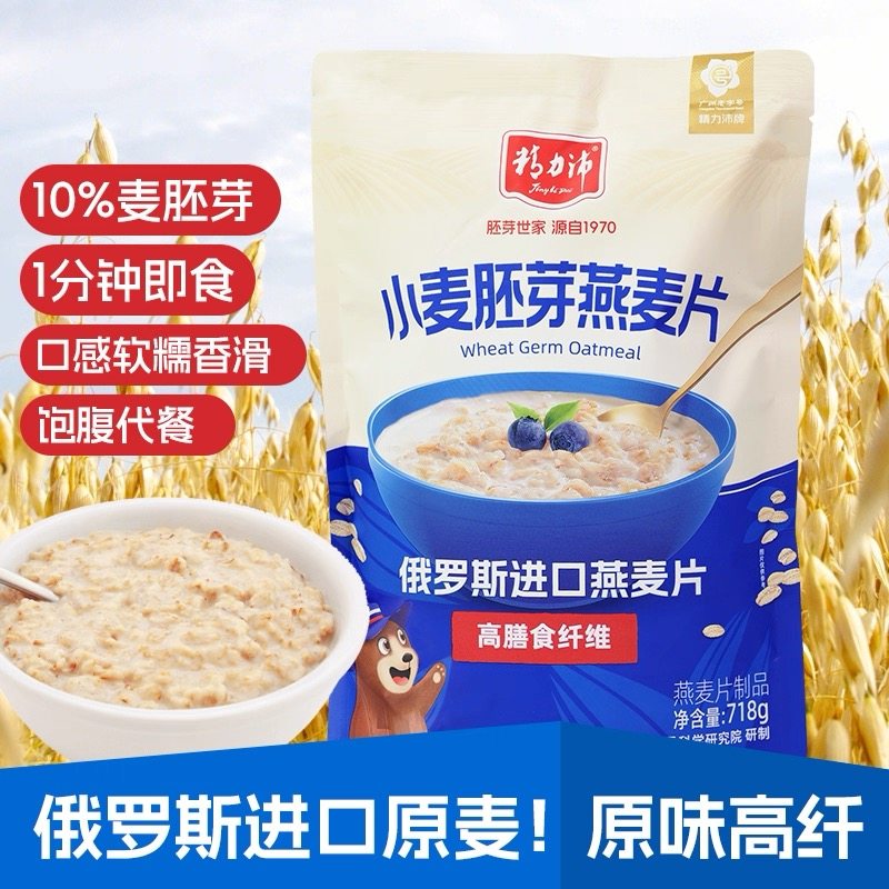 精力沛进口俄罗斯燕麦片即食冲饮胚芽麦片原味高纤维代餐早餐718g