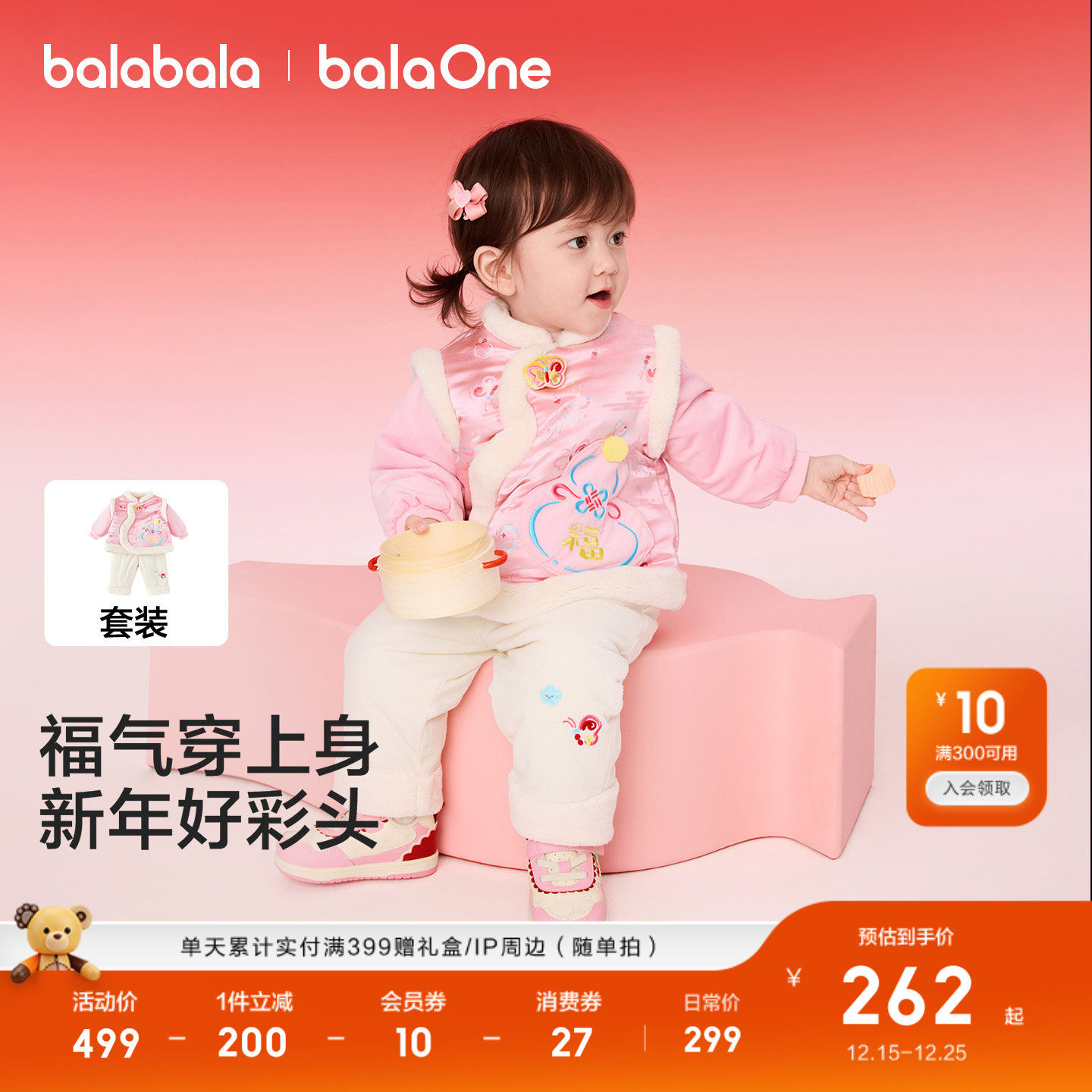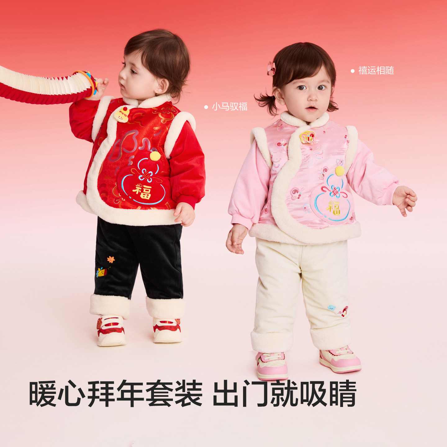 巴拉巴拉童装儿童套装女童宝宝拜年服男童两件套新中式2025新款萌