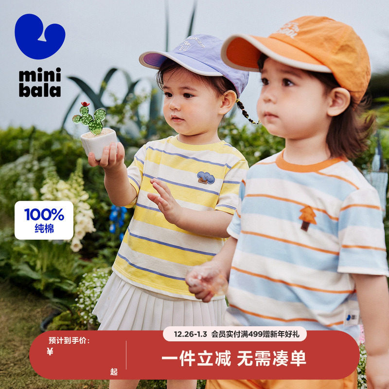 【纯棉条纹T恤】迷你巴拉巴拉男女童短袖T恤宝宝撞色条纹婴儿夏装