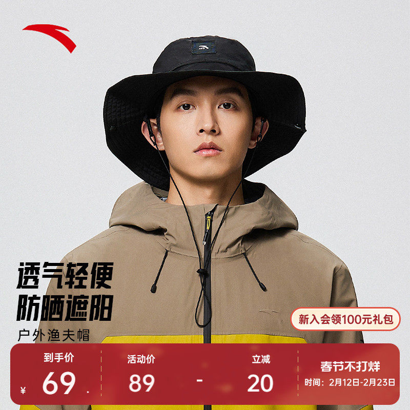安踏运动帽户外露营钓鱼遮阳防晒调可拆卸牛仔帽渔夫帽登山帽子