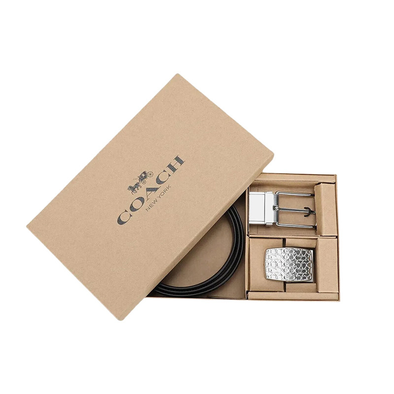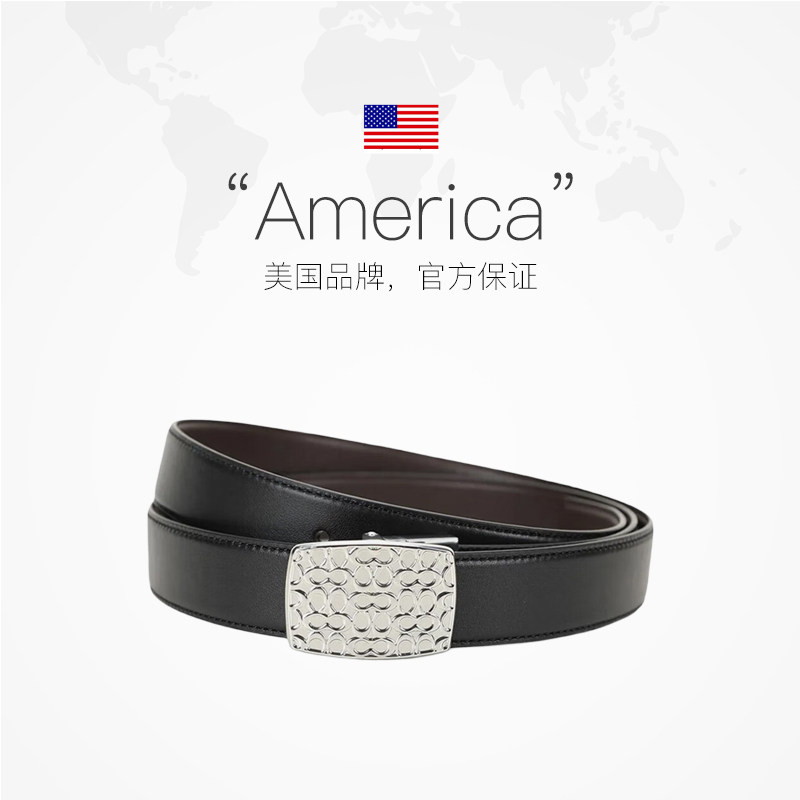 【自营】COACH 蔻驰男士牛皮板扣针扣双头皮带腰带套装黑色商务