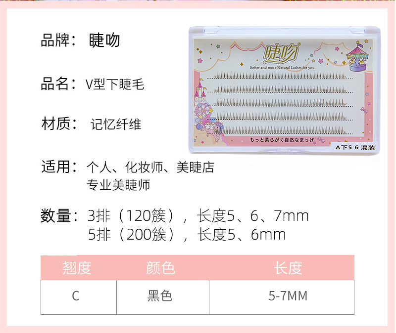 睫吻V型空气镂空下睫毛自然微翘易贴合新手仿真A型猫耳朵下假睫毛