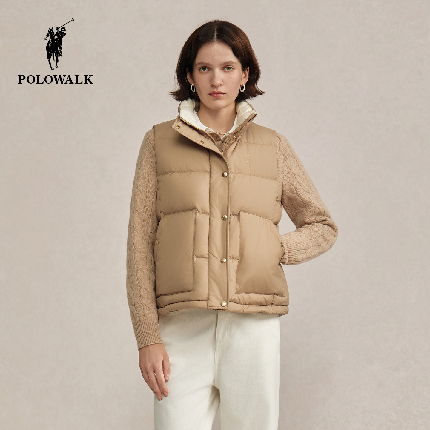 【特惠】POLOWALK女装羽绒马甲2025冬装新款羽绒背心厚立领外套