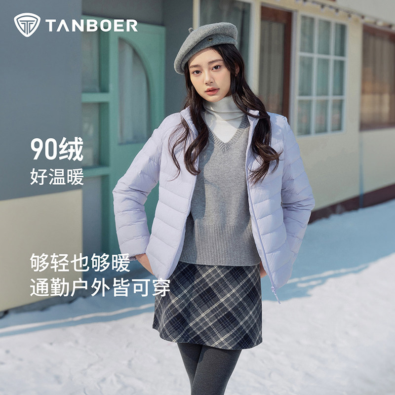 坦博尔轻薄羽绒服女短款2025年秋冬新款立领显瘦休闲轻便外套-AA