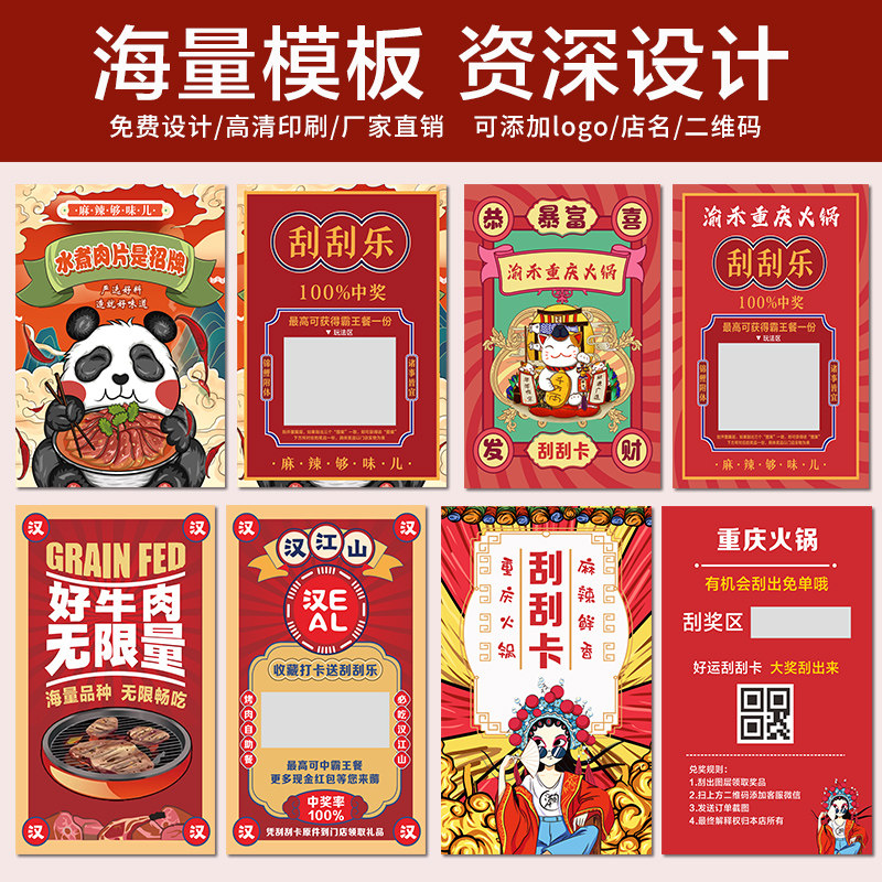 房子形状创意餐饮店刮刮卡定制麻辣火锅小龙虾店刮刮乐设计logo二维码抽奖券美食菜单氛围菜品小卡片抽奖券印