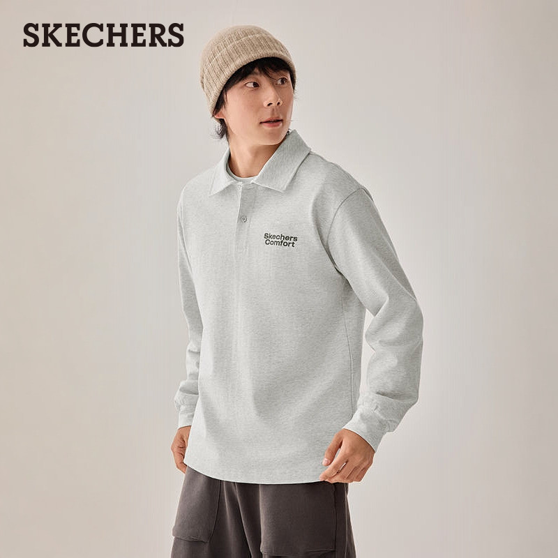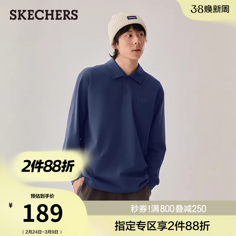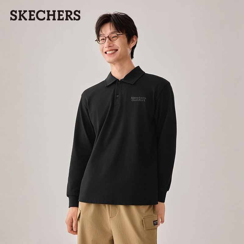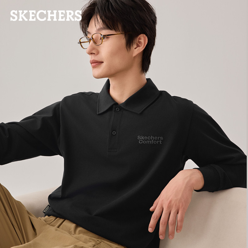 斯凯奇春季流行时尚男经典款针织长袖T恤宽松显瘦运动百搭POLO衫