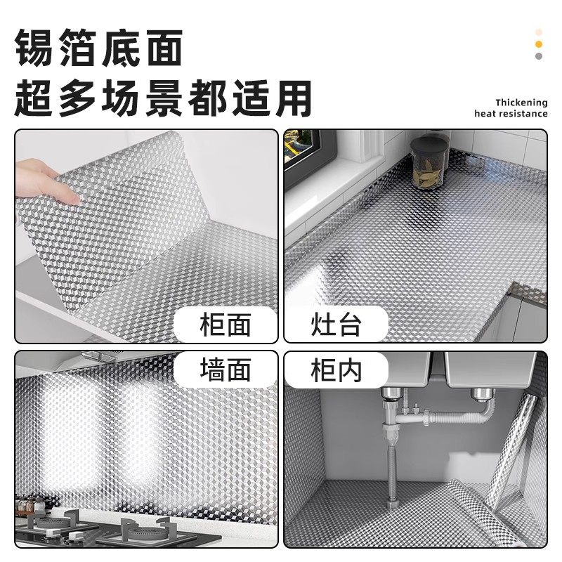 厨房防油贴纸防火耐高温灶台防水墙壁纸加厚自粘橱柜防潮铝箔锡纸