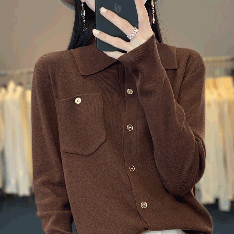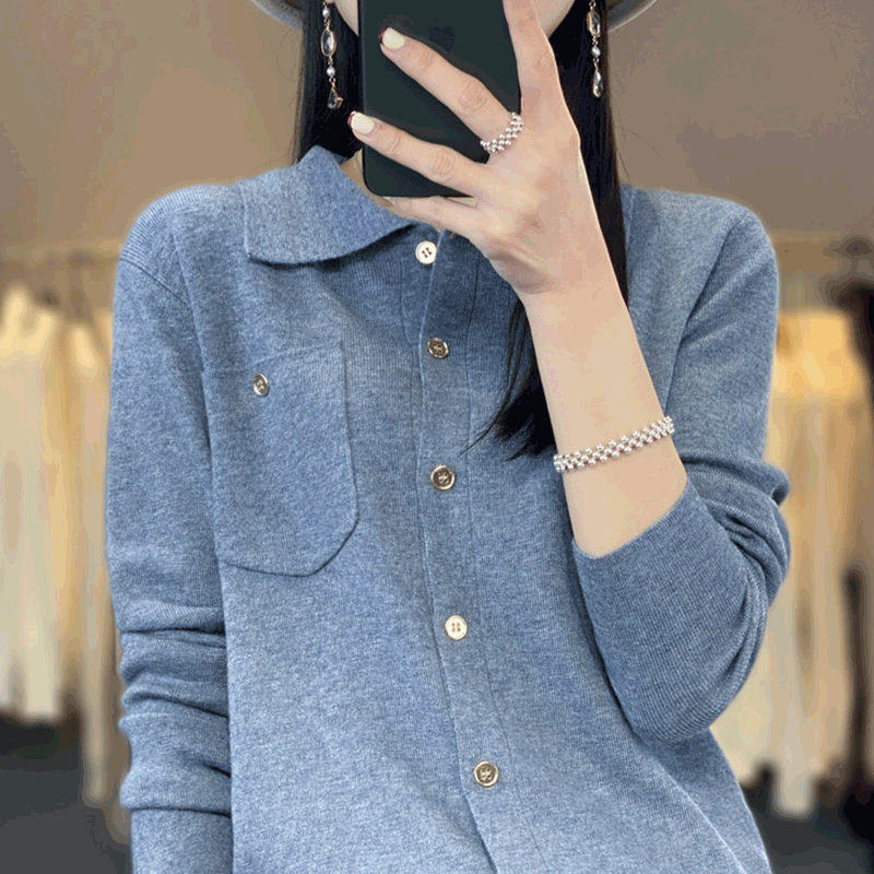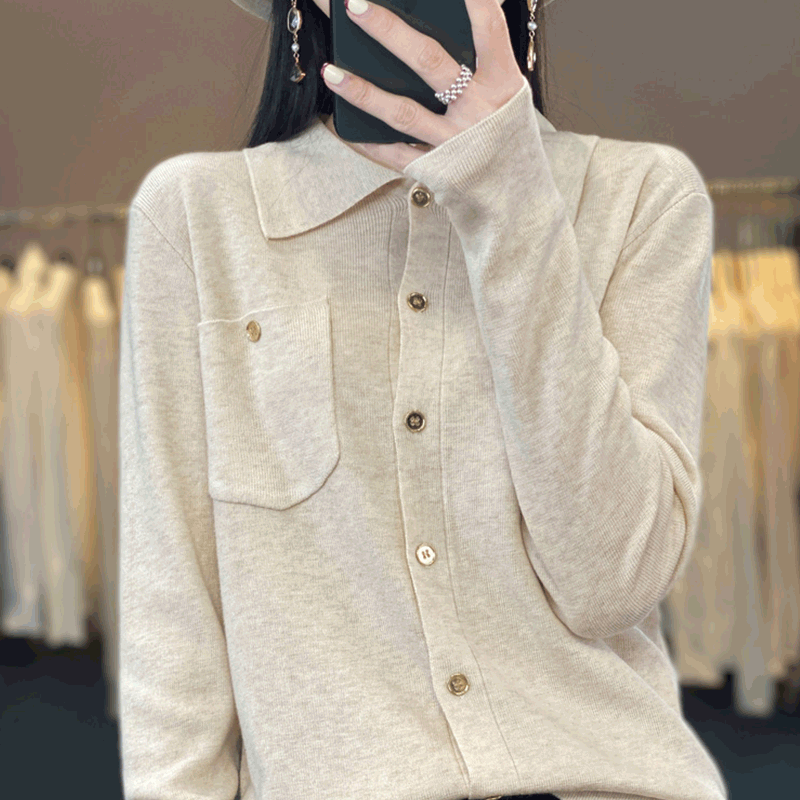 鄂尔多斯市断码羊绒开衫女春秋新款宽松毛衣外套翻领针织羊毛衫