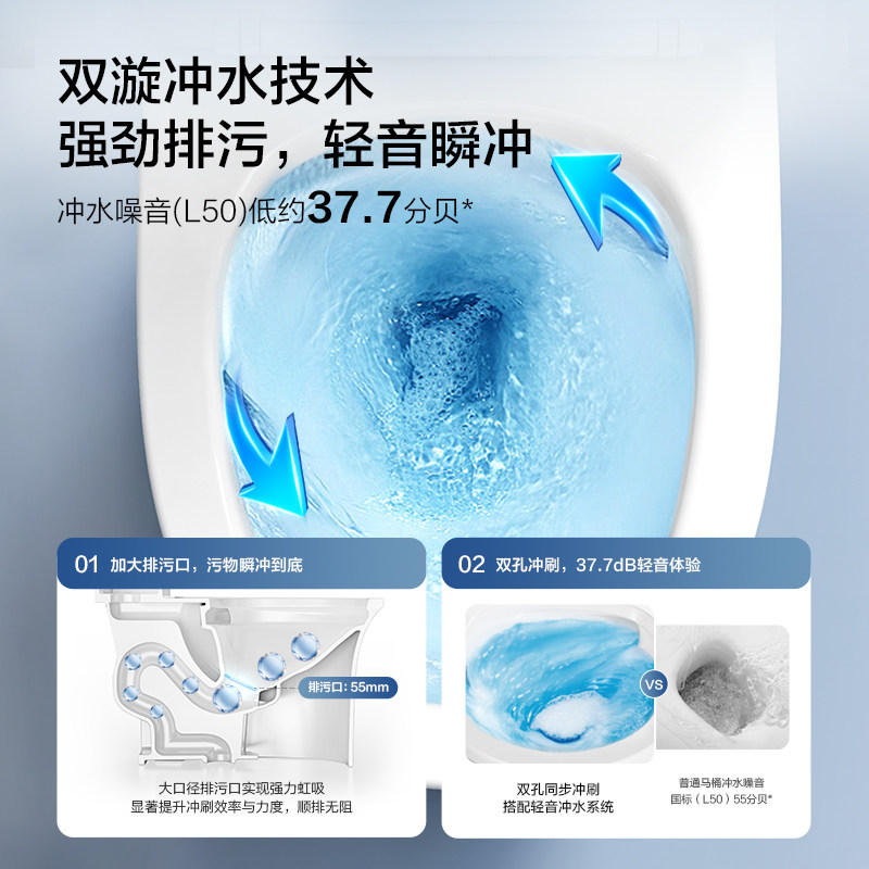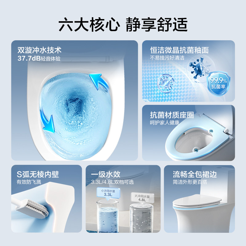 双漩轻音劲冲 S弧无棱内壁 抗菌釉面座圈