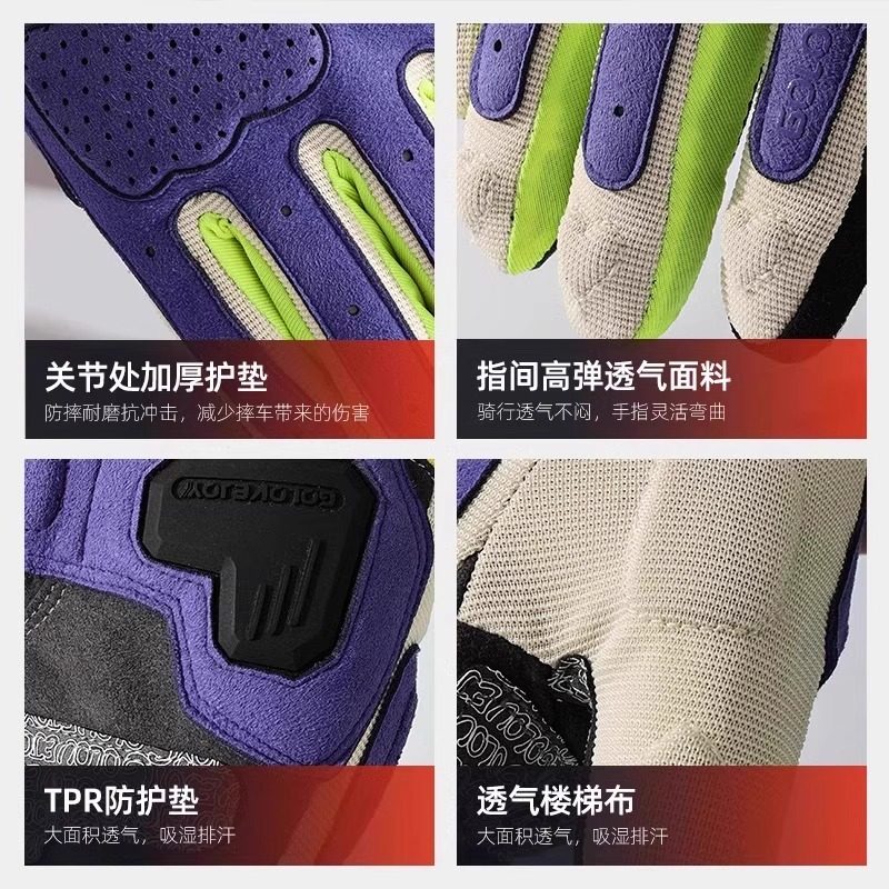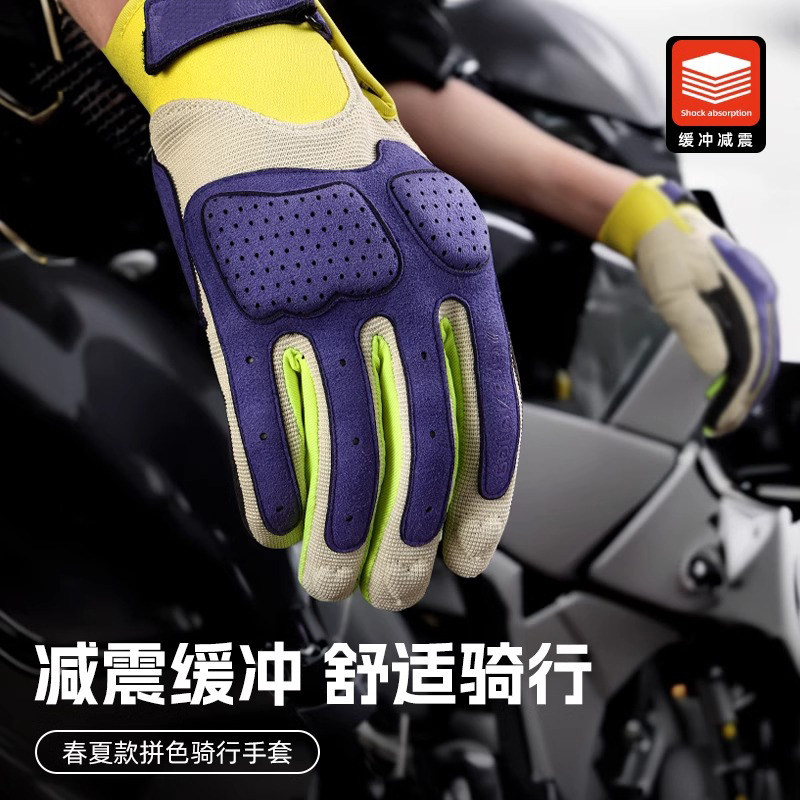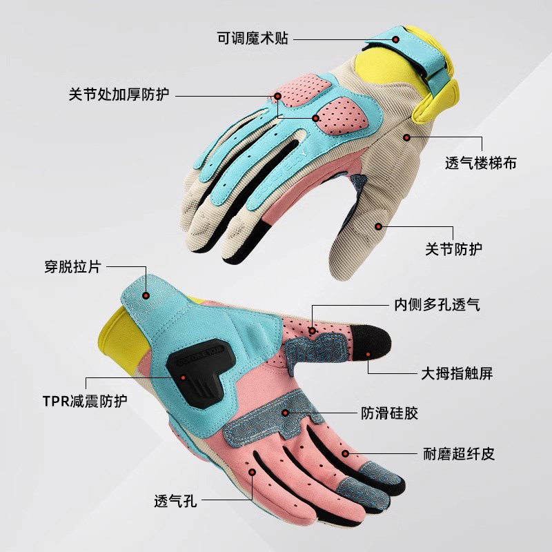 摩托车骑行手套女夏季防晒透气赛车骑士复古机车手套男全指可触屏
