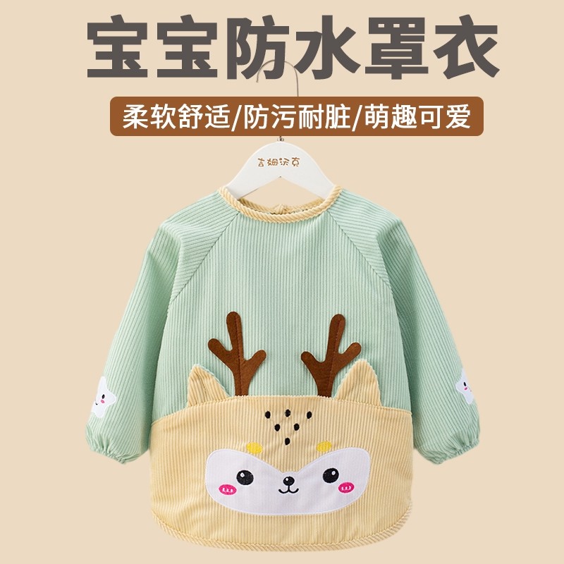 宝宝罩衣防水防脏儿童秋冬季女男宝反穿衣围兜吃饭衣外穿婴儿围裙
