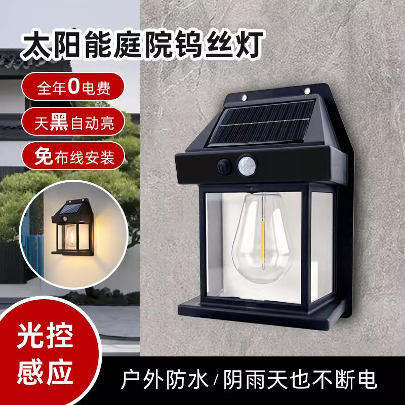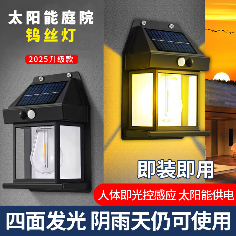 太阳能照明灯户外防水墙壁灯庭院灯家用门口感应灯路灯LED钨丝灯