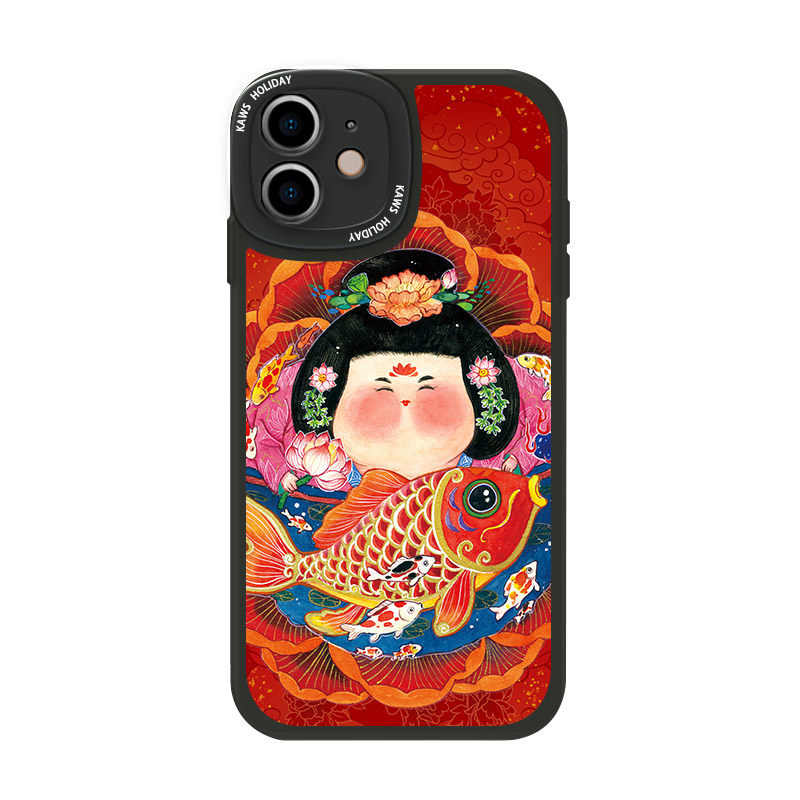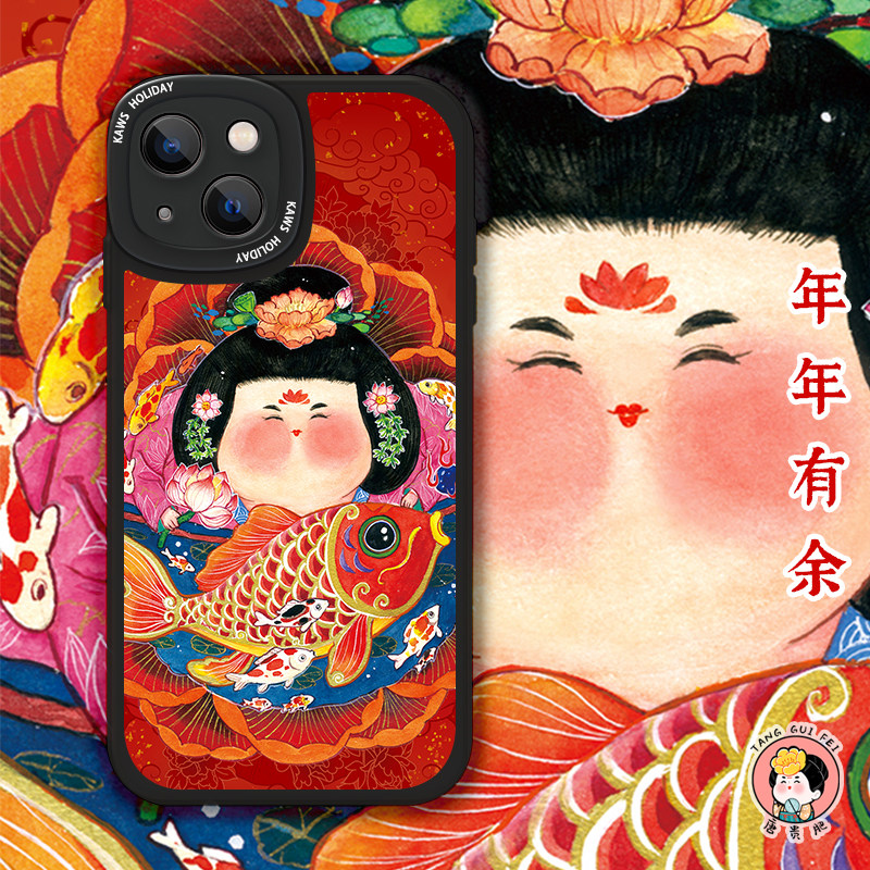 唐贵肥原创适用iPhone苹果17手机壳16小羊皮软壳17promax镜头全包防摔新中式华为mate60新款p60古风发财锦鲤
