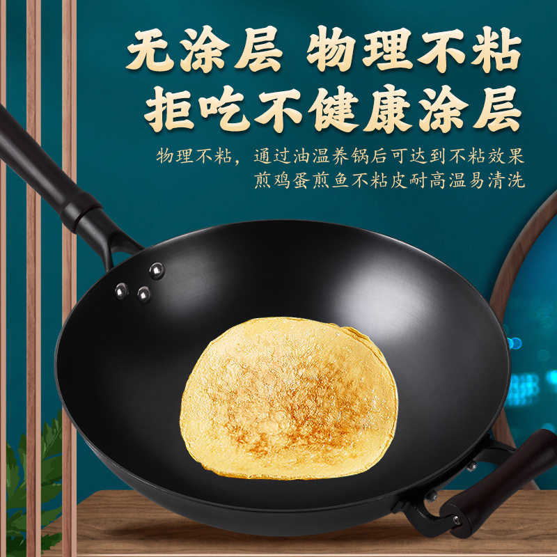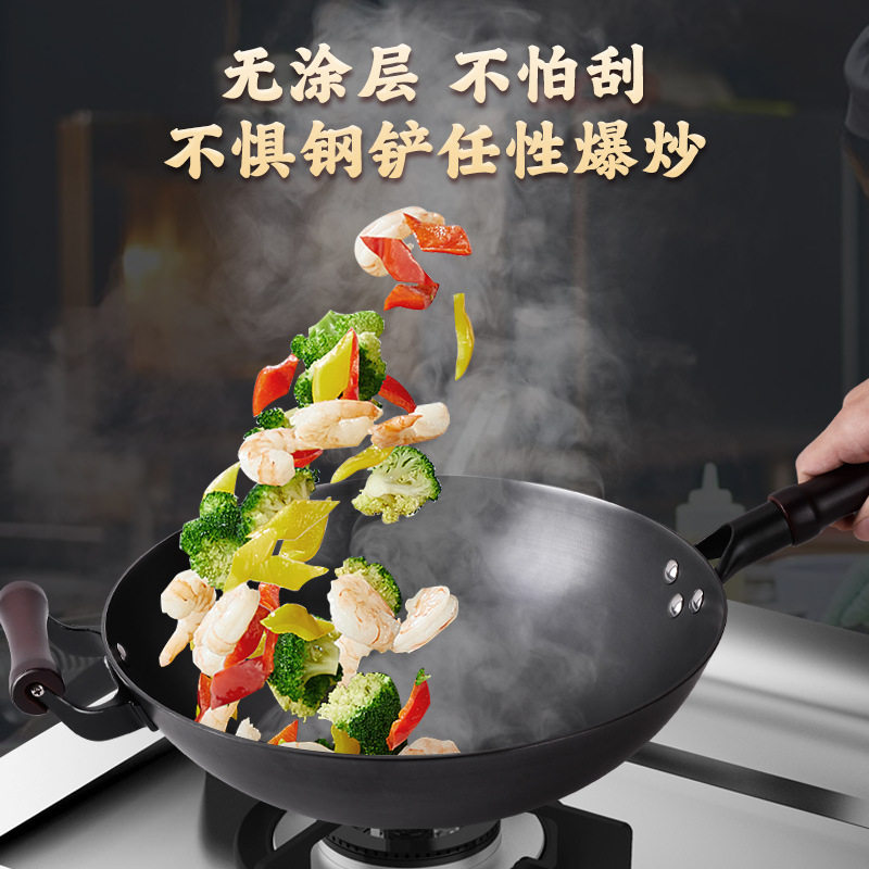 铁锅官方旗舰炒菜锅老式炒锅铁锅家用不粘锅无涂层燃气灶适用