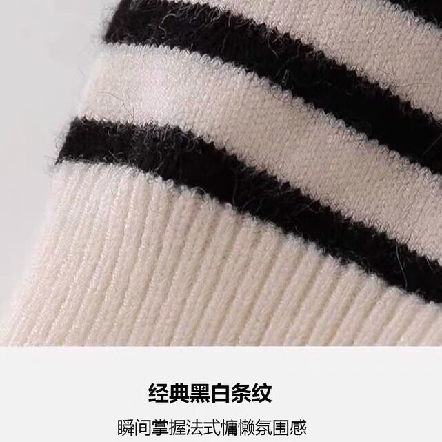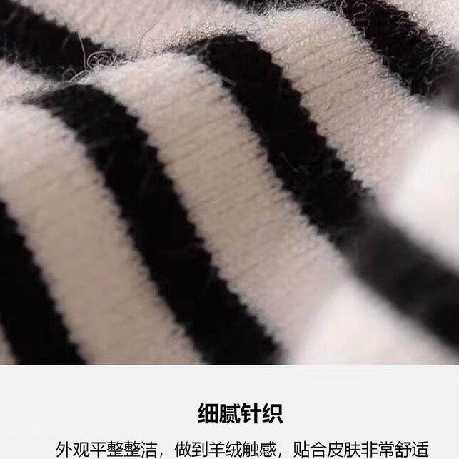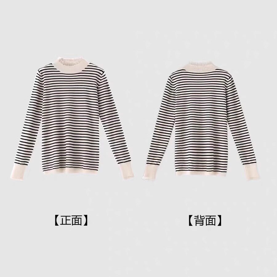 【松弛叠搭】官方冬季新款木耳边条纹针织衫女打底衫内搭套头毛衣
