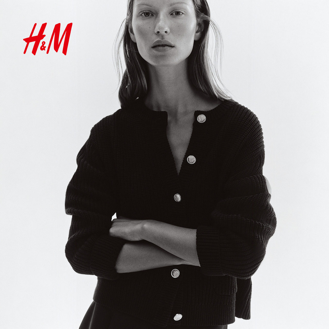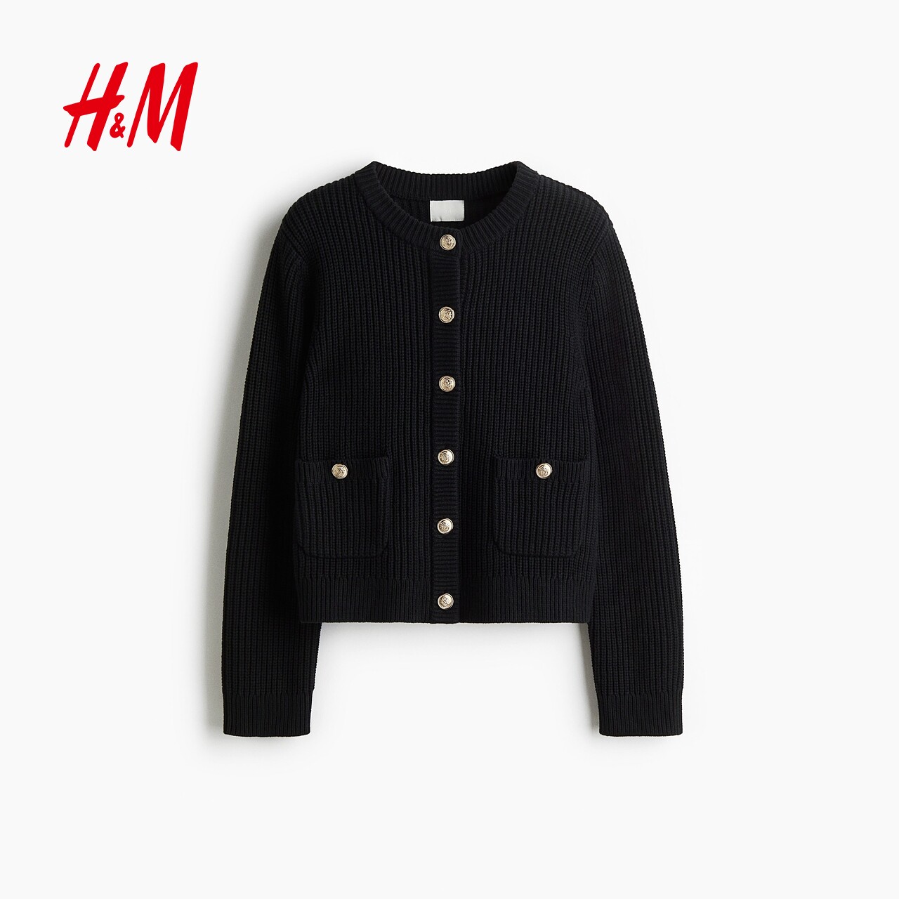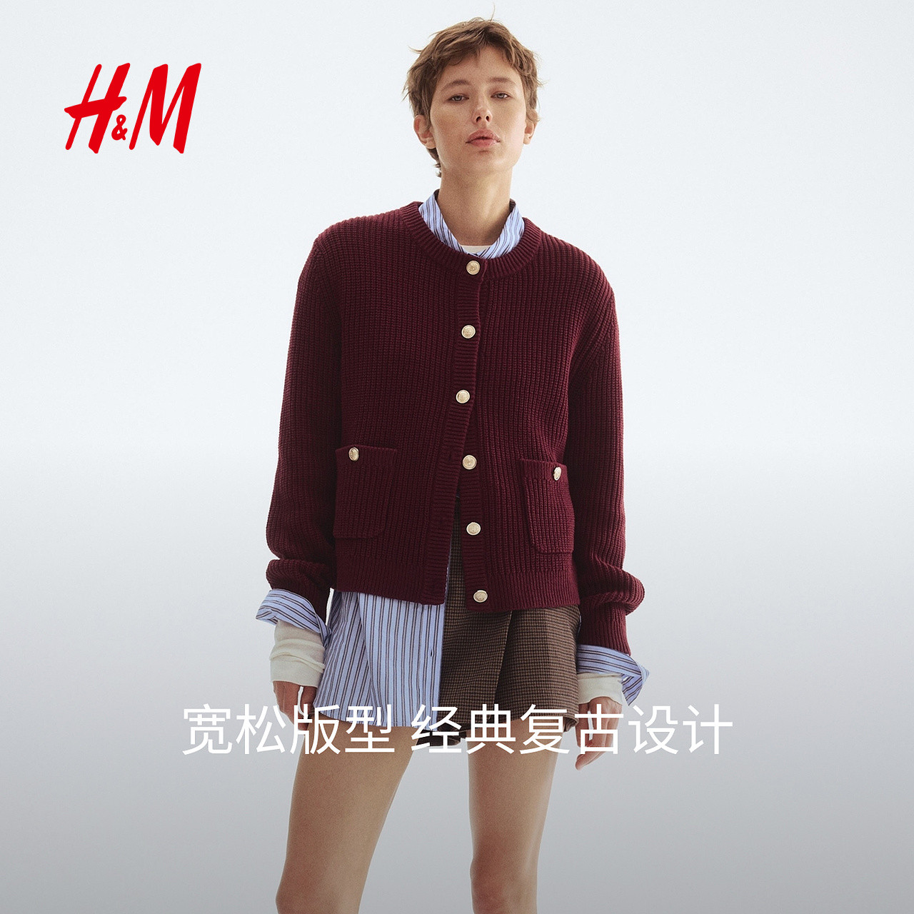 HM女装毛针织衫春季红色毛衣学院风长袖针织开衫1248631