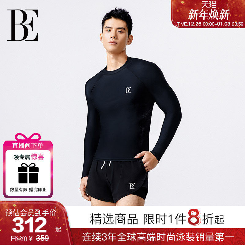 【高瀚宇同款】BE范德安男士长袖泳衣套装大码成人防晒泳裤温泉