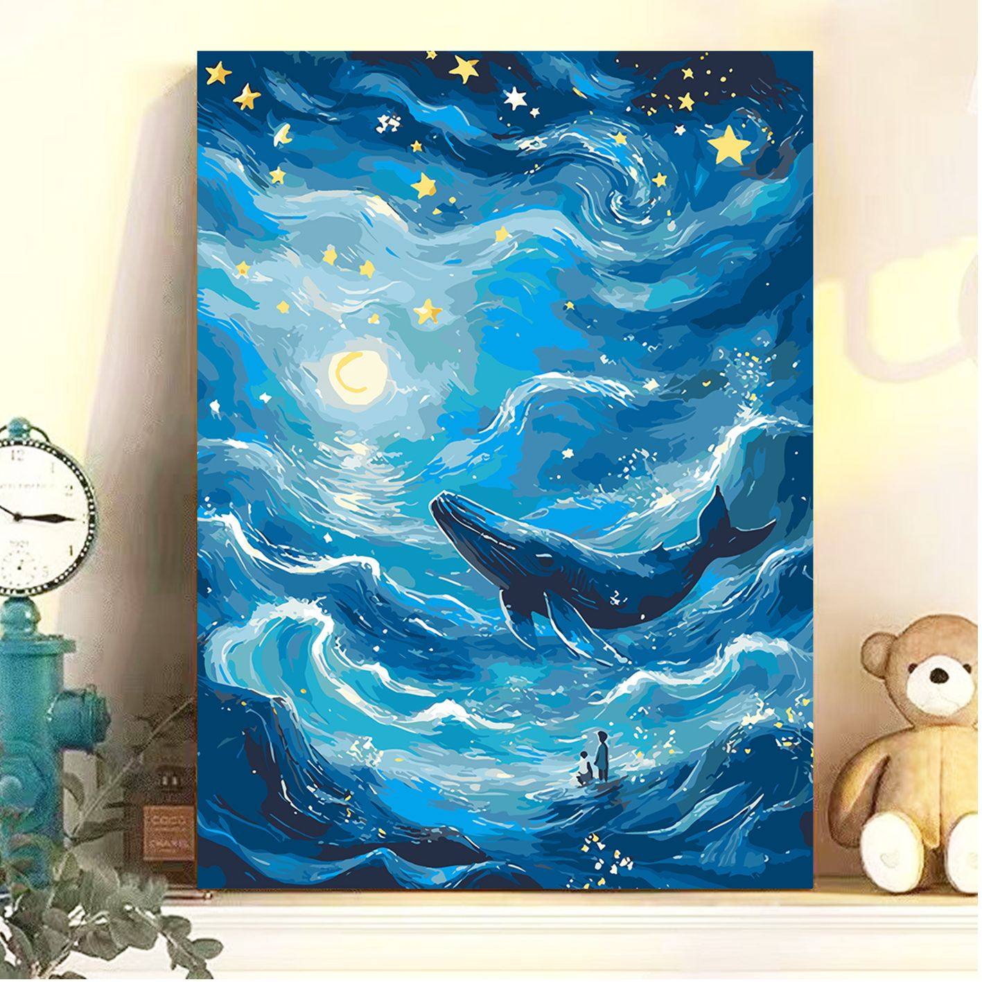 星月夜梵高星空世界名画填充填色diy数字油画风景装饰画猫咪颜料