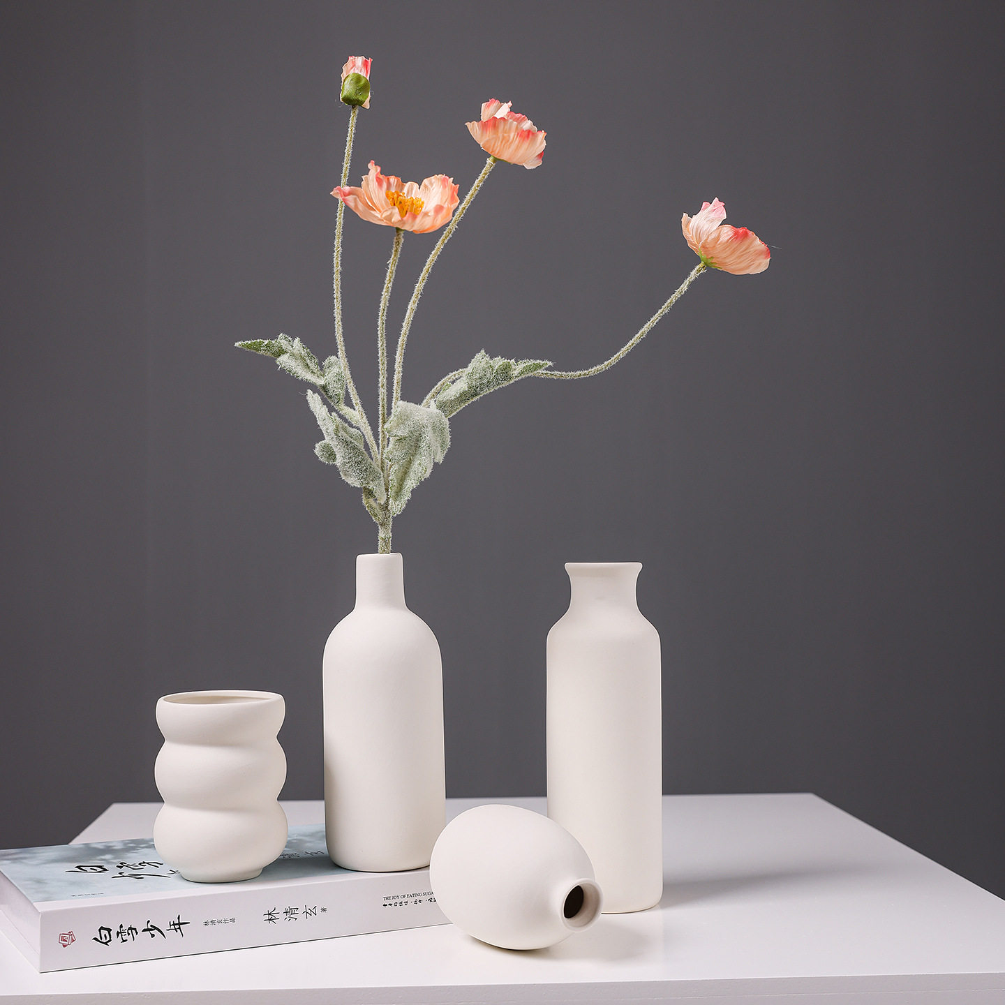 北欧简约白色迷你陶瓷小花瓶插花干花高级感客厅桌面装饰花器摆件