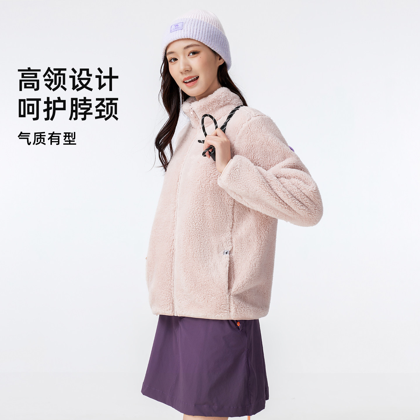 好物体验骆驼抓绒衣女式上衣秋长袖加绒保暖立领户外摇粒绒外套男