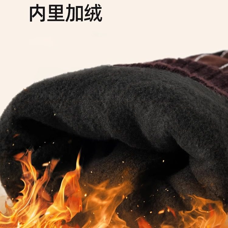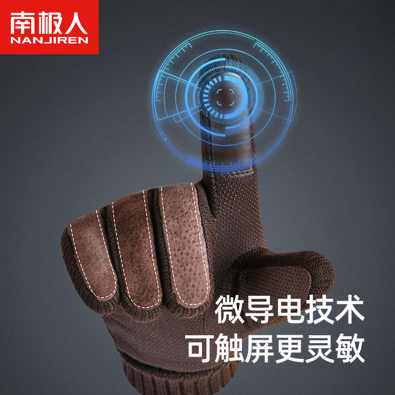 南极人真皮猪皮手套男士冬季保暖加绒厚户外防寒风棉骑行手套A