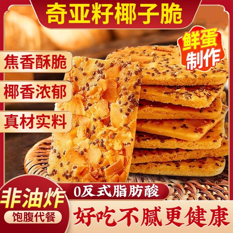 【品质推荐】奇亚籽椰子脆片坚果饼干红枣山药薄饼包装休闲小零食