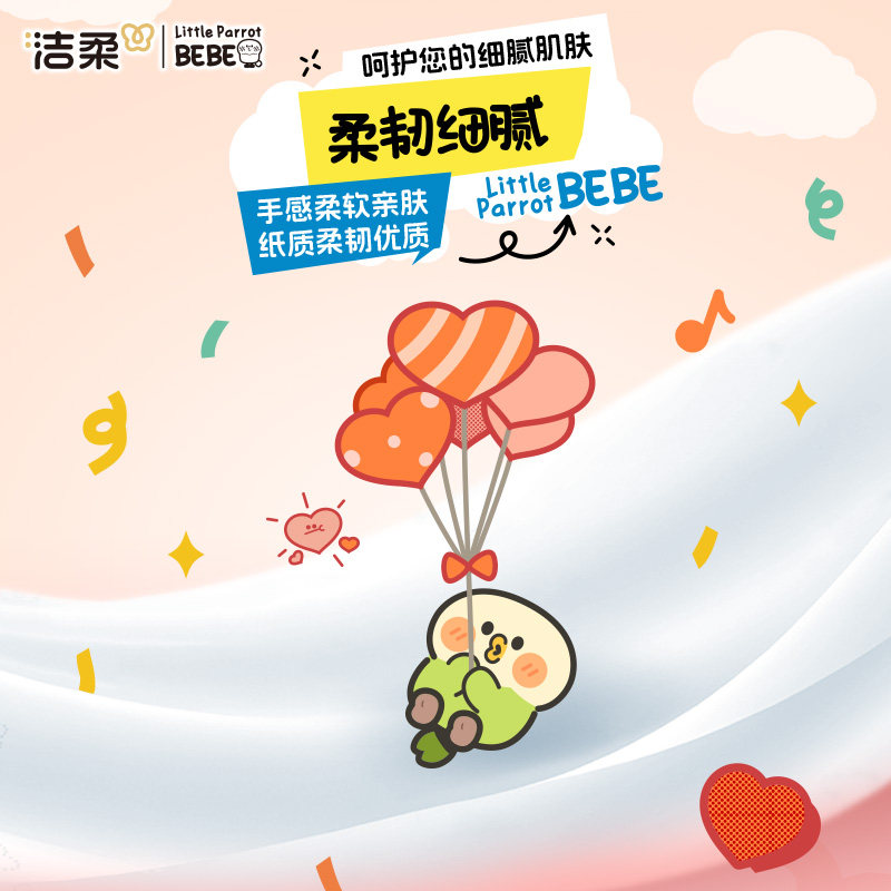 【学生必备】洁柔小鹦鹉抽纸3层40抽便携式方巾面巾餐巾卫生纸巾