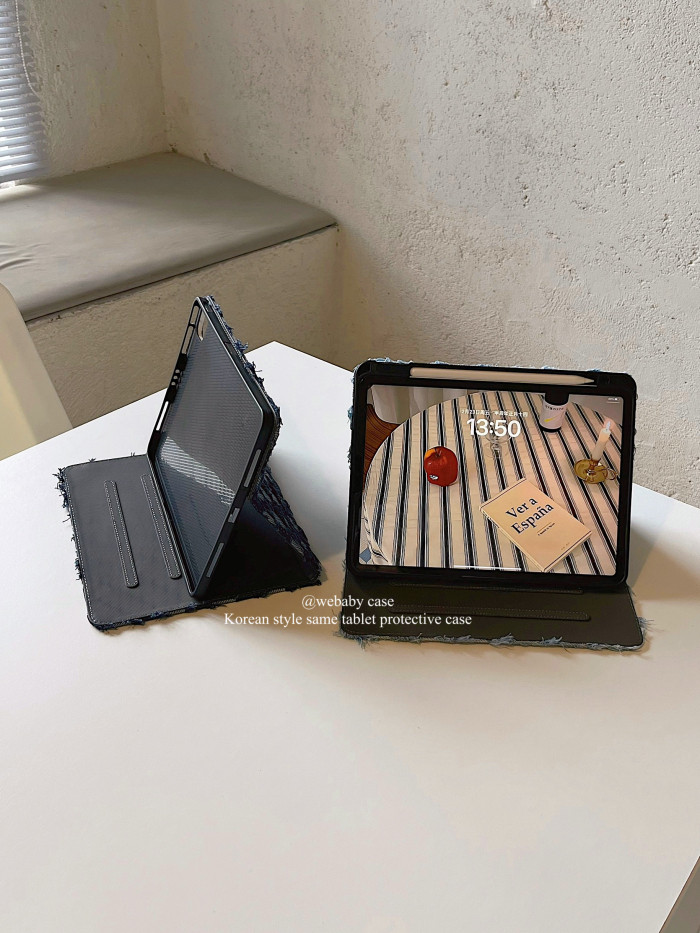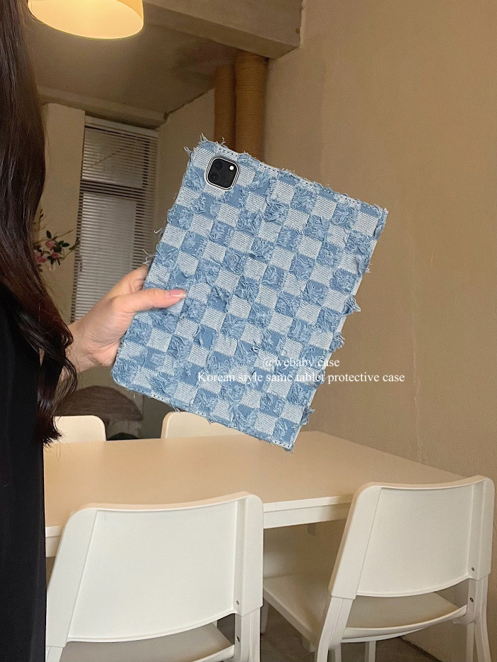 韩国/牛仔格子流苏/ipad pro11壳/air4/5/10.9寸保护套 10代/10.2/9.7寸全包防摔mini6平板壳翻盖休眠/笔槽