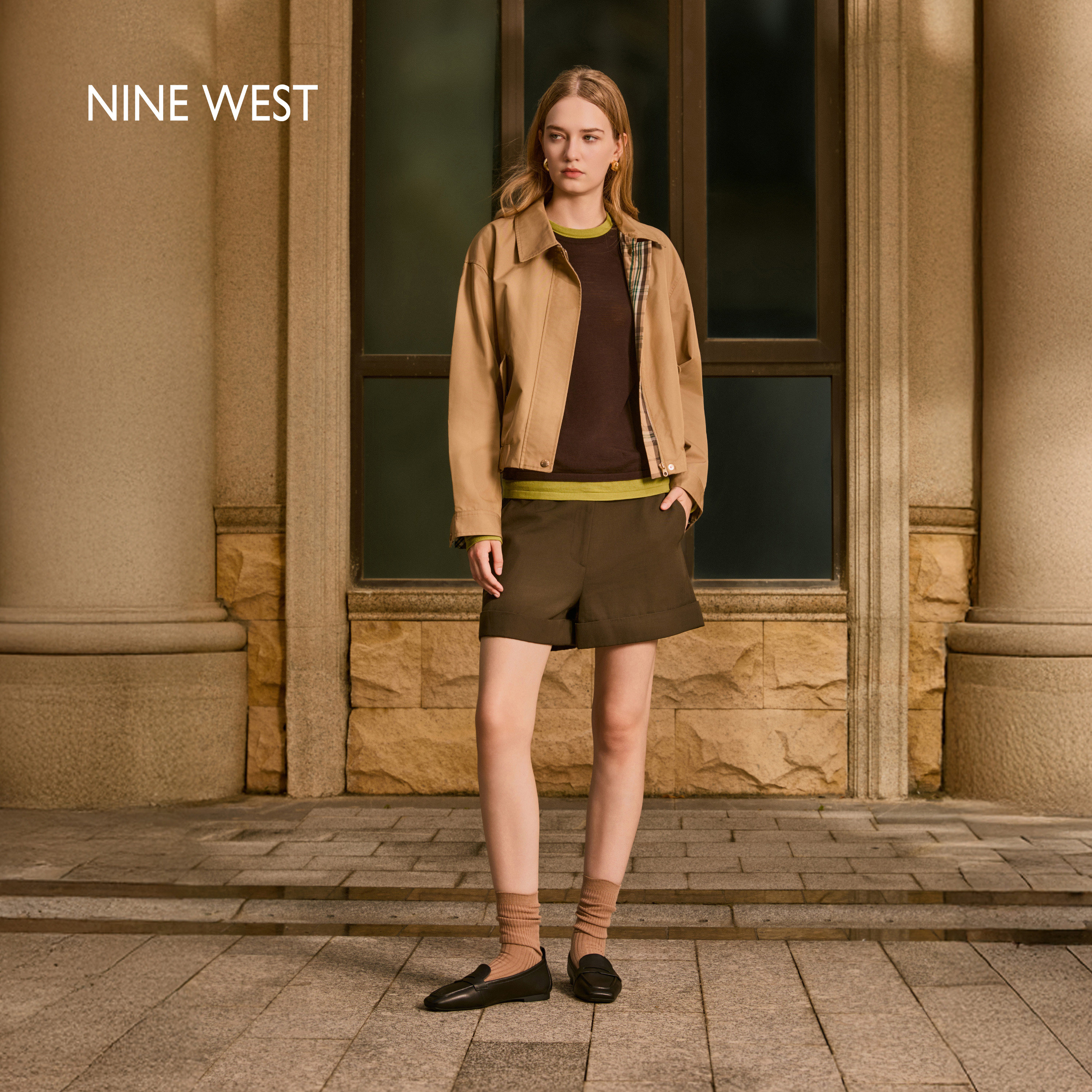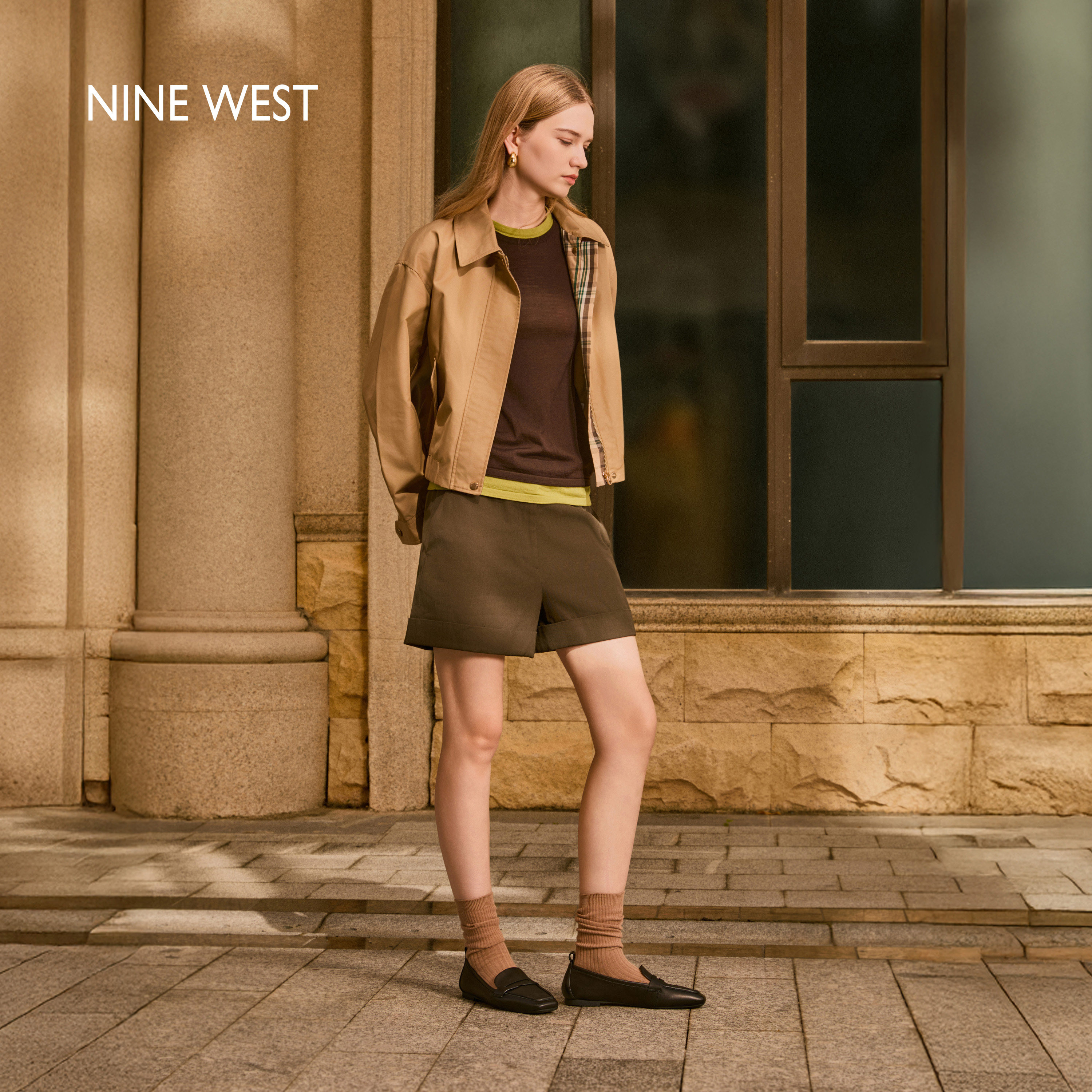 Nine West/玖熙平底乐福鞋女2025秋冬新款休闲皮鞋方头软底豆豆鞋