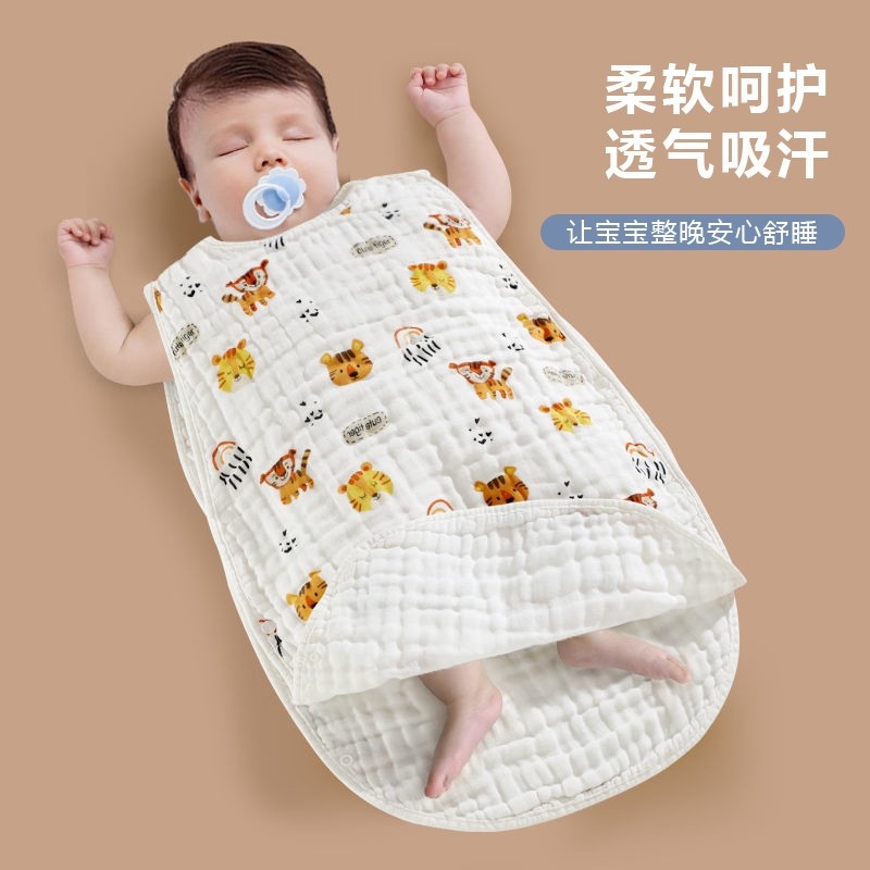 婴儿幼儿纯棉纱布睡袋宝宝背心护肚子睡觉防踢被防着凉恒温四层