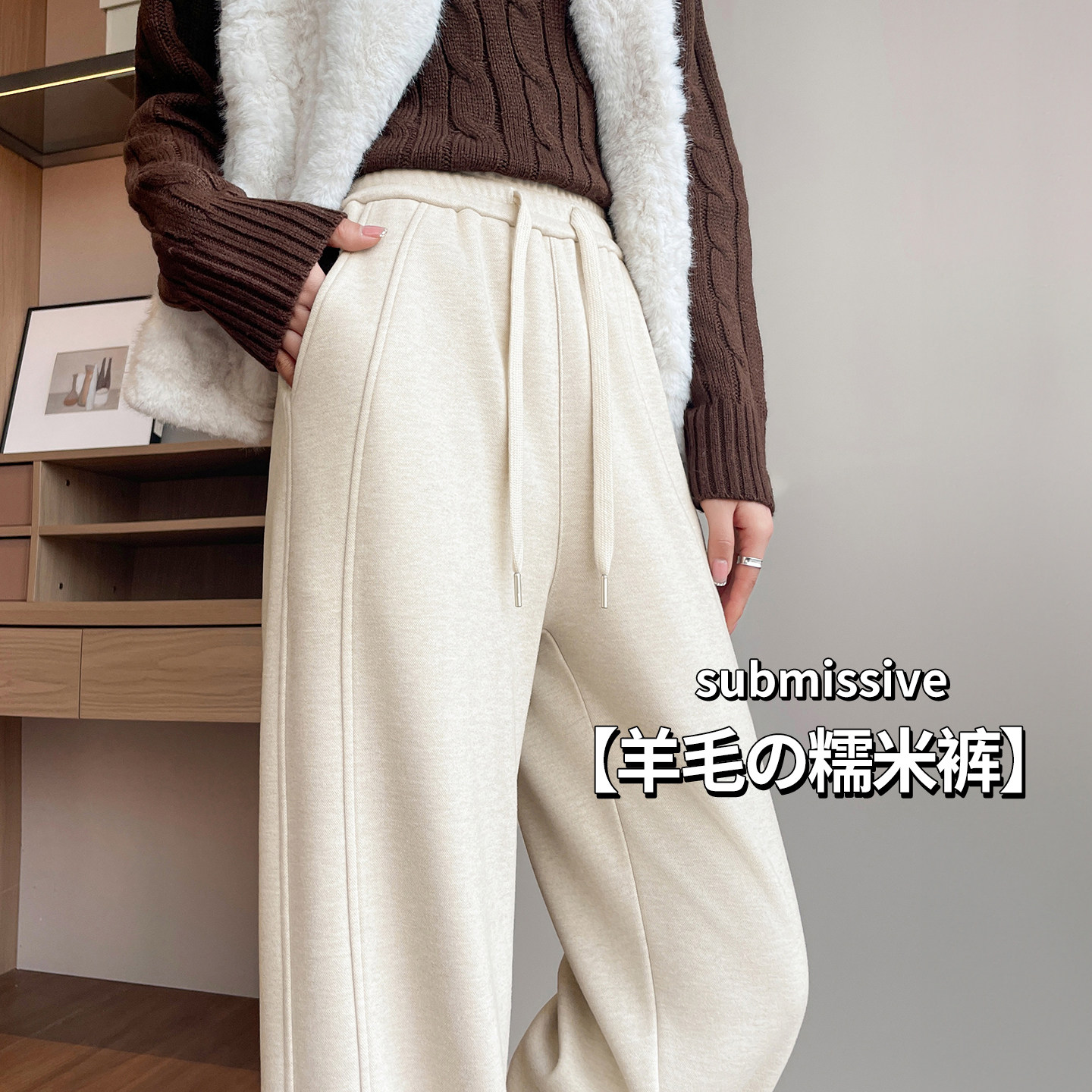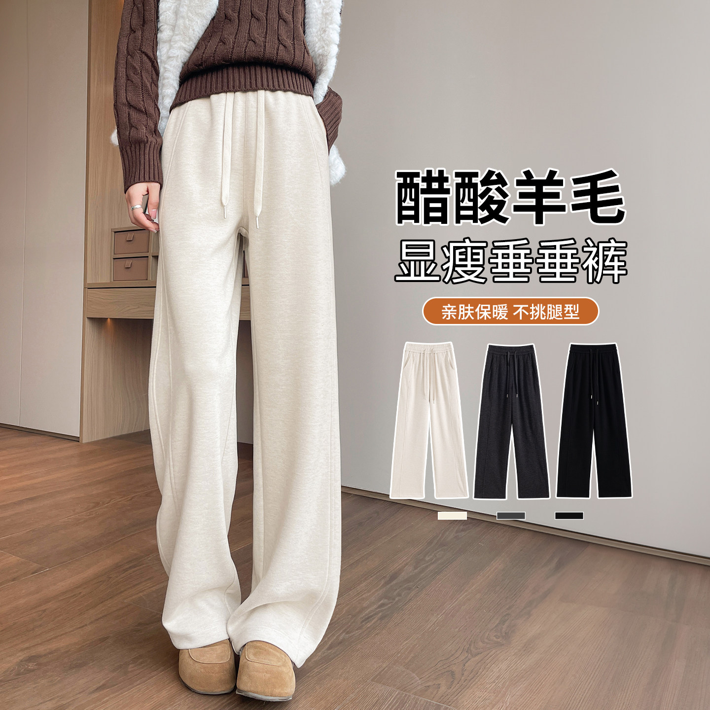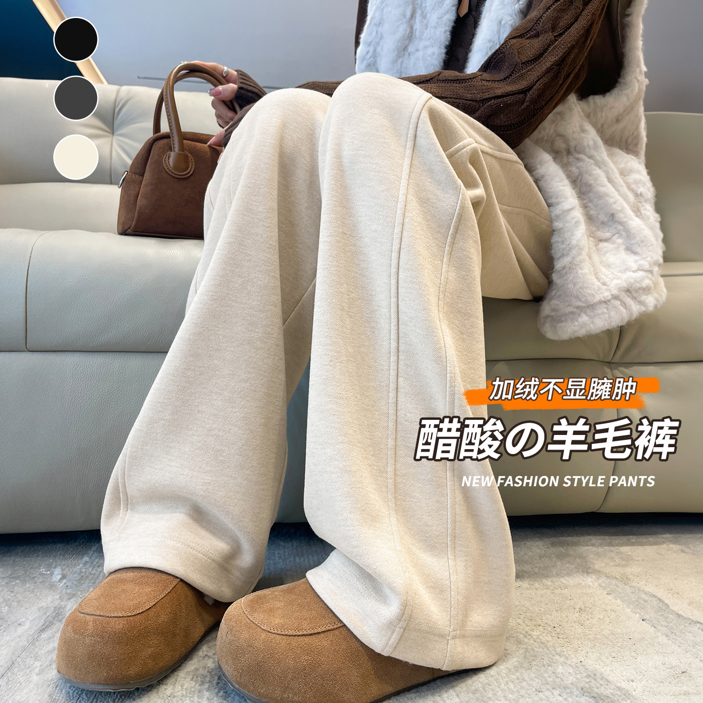 糯米裤女羊羔绒垂坠感软糯加绒加厚秋冬韩系慵懒松弛感阔腿裤TB