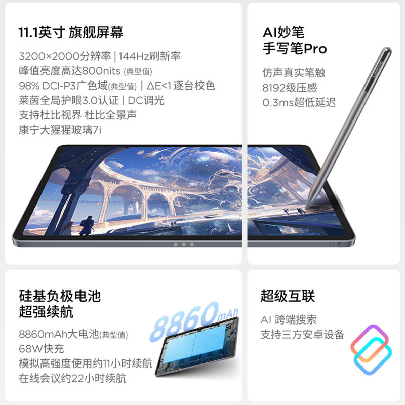 【新品上市】联想平板小新平板 Pro GT 11.1英寸 3.2K超清 超广视野模式 骁龙8Gen3旗舰芯片 AI平板电脑