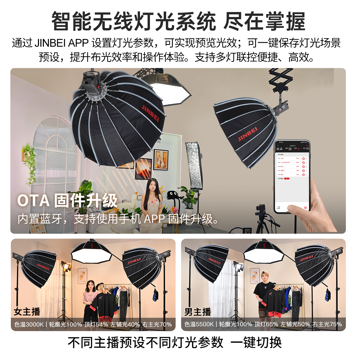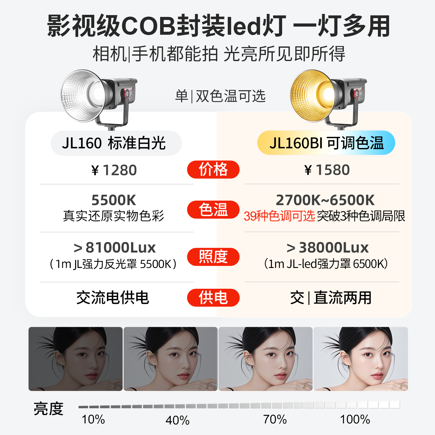 金贝EF150pro升级JL160W 160BI直播摄影补光灯主播专用绿幕直播间影视常亮灯led视频打光影棚人像深抛柔光灯